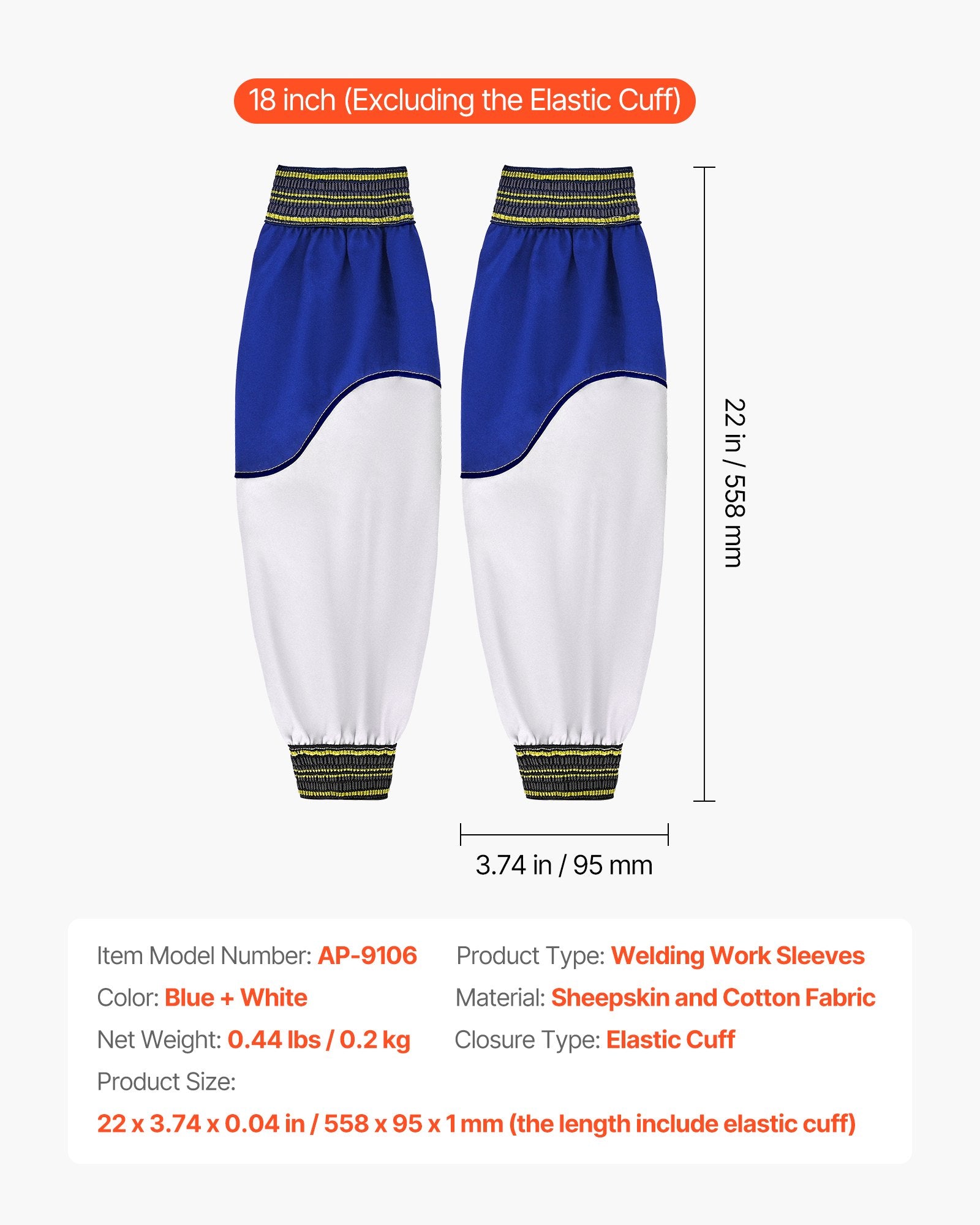- Extended Coverage: Our heat-resistant welding sleeves have 22 inches total length, with 18 inches effective protection length (excluding the elastic cuffs). They provide extended coverage from wrist to upper arm, and feature elastic cuffs at both ends to ensure a secure and comfortable fit