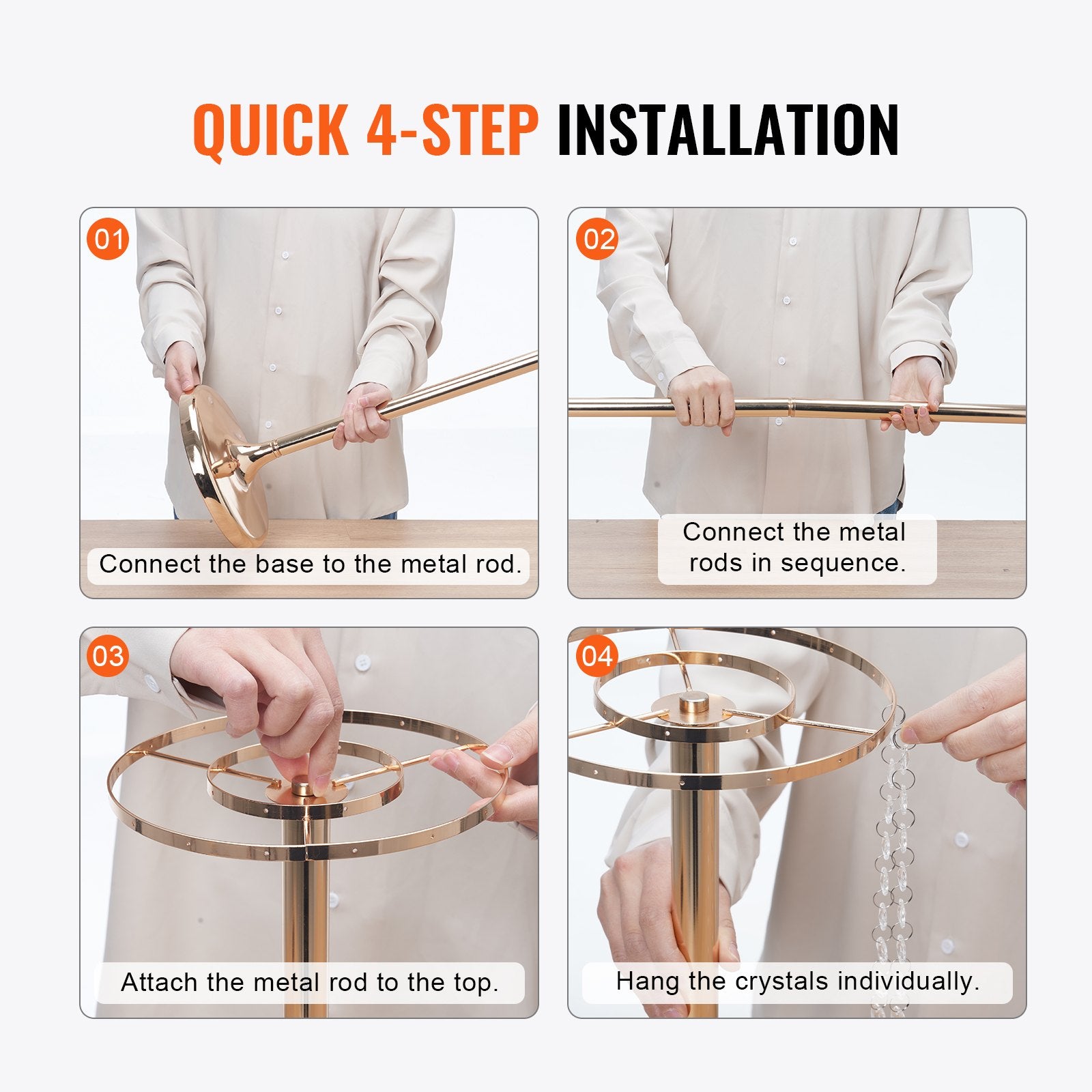 - Easy Assembly: Assembly of this crystal flower rack is simple and tool-free, requiring just four steps: Step 1 - Connect the base with the metal rod, Step 2 - Assemble the metal rods in sequence, Step 3 - Connect the metal rod with the top, Step 4 - Attach the crystals individually. Assembly can be completed in just a few minutes.