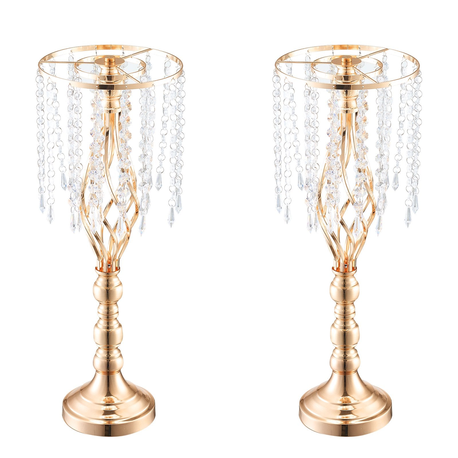 2PCS 55cm/21.65” Tall Crystal Wedding Flower Stand, Metal Wedding Centerpiece Vase, Gold Flower Holders Floral Display Rack for Tables Wedding Dinner Party, Ceremony Birthday Event Decor