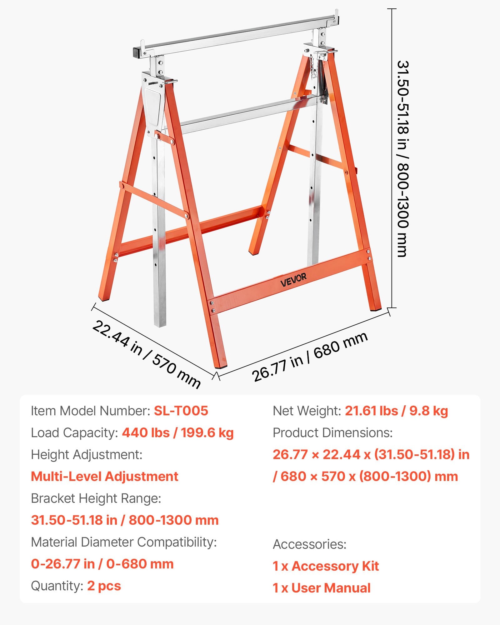 - Material Length Compatibility: 0-26.77 in / 0-680 mm