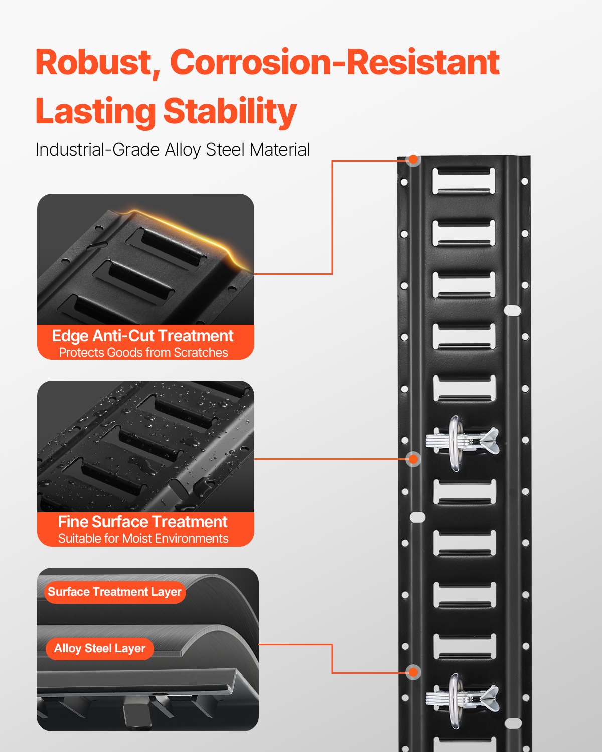 - Built Tough: Crafted from industrial-grade solid steel with a fine powder coating, these E-track tie-down rails are built to last. No rust, no corrosion – just reliable performance. This material and surface treatment promise a long service life, even in harsh, damp environments, without worrying about quality issues.