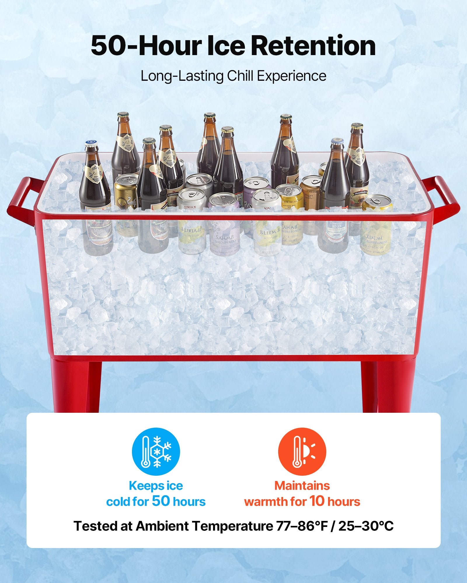 - Long-Lasting Cooling: Our cooler cart features a PP inner wall with PU foam insulation, keeping items cold for up to 50 hours and warm for 10 hours without electricity. Enjoy refreshing drinks all day during outdoor events