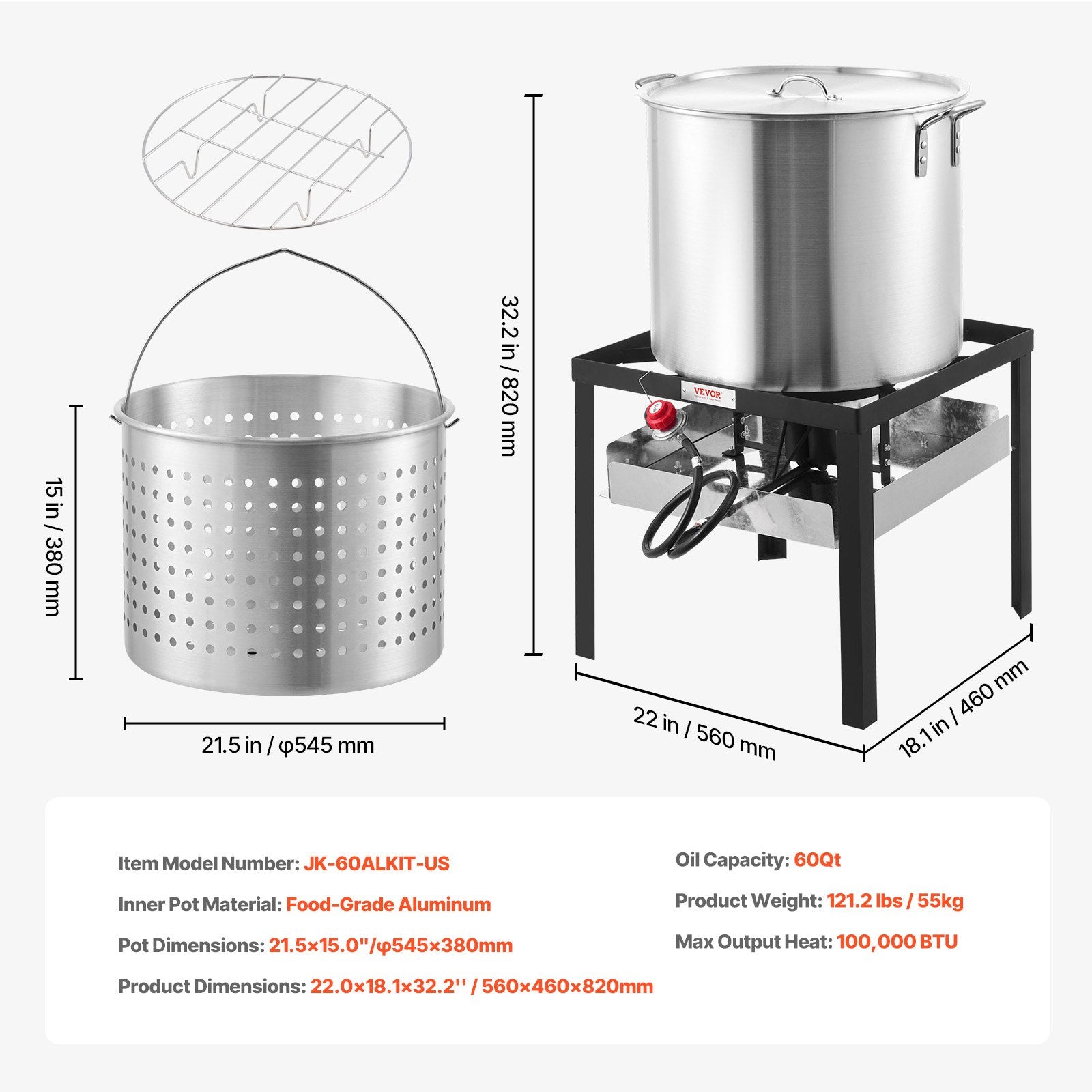 - Large Capacit: This seafood boiling kit boasts an 60 Qt / 54.8 L capacity, which is large enough to hold a whole 18lbs turkey or a large pot of seafood, crawfish, and more. Perfect for outdoor camping, parties, and gatherings, as well as holidays like Christmas and Thanksgiving! Note: The size of ingredients varies by weight, so choose based on the ingredient size.
