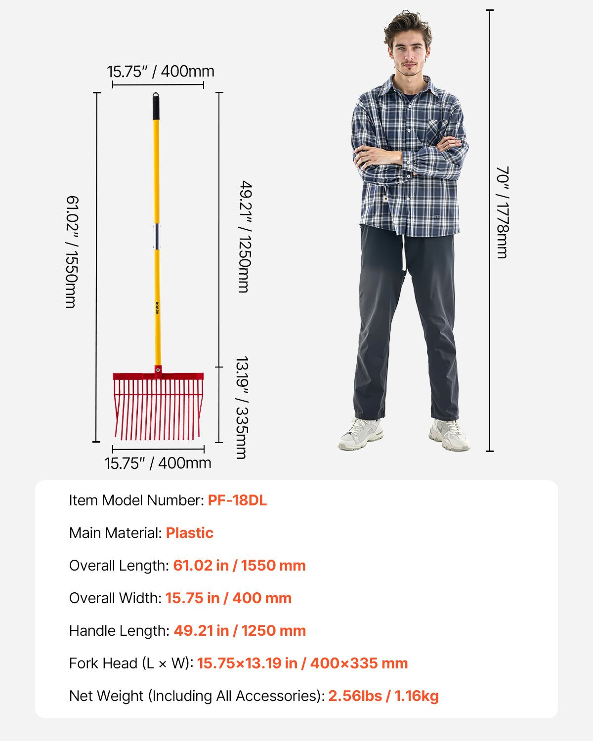 - Versatile Use: Ideal for handling large piles of leaves and pine needles, this muck fork tool is also suitable for moving mulch, wood chips, manure, hay, and more. However, it is not suitable for digging. From leaves to straw, it can handle a wide range of tasks effortlessly.