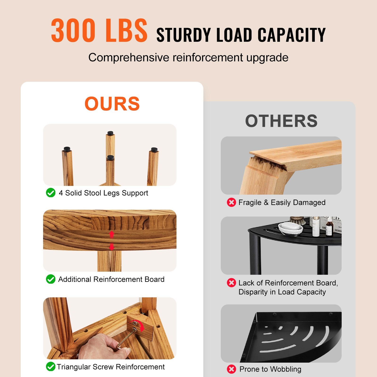 - 300LBS Multiple Reinforcements: Thickened seat board and solid stool legs provide robust support, upgraded with reinforcement plates and bottom triangular screws to significantly enhance stability, minimizing wobbling even when used with a single foot support.