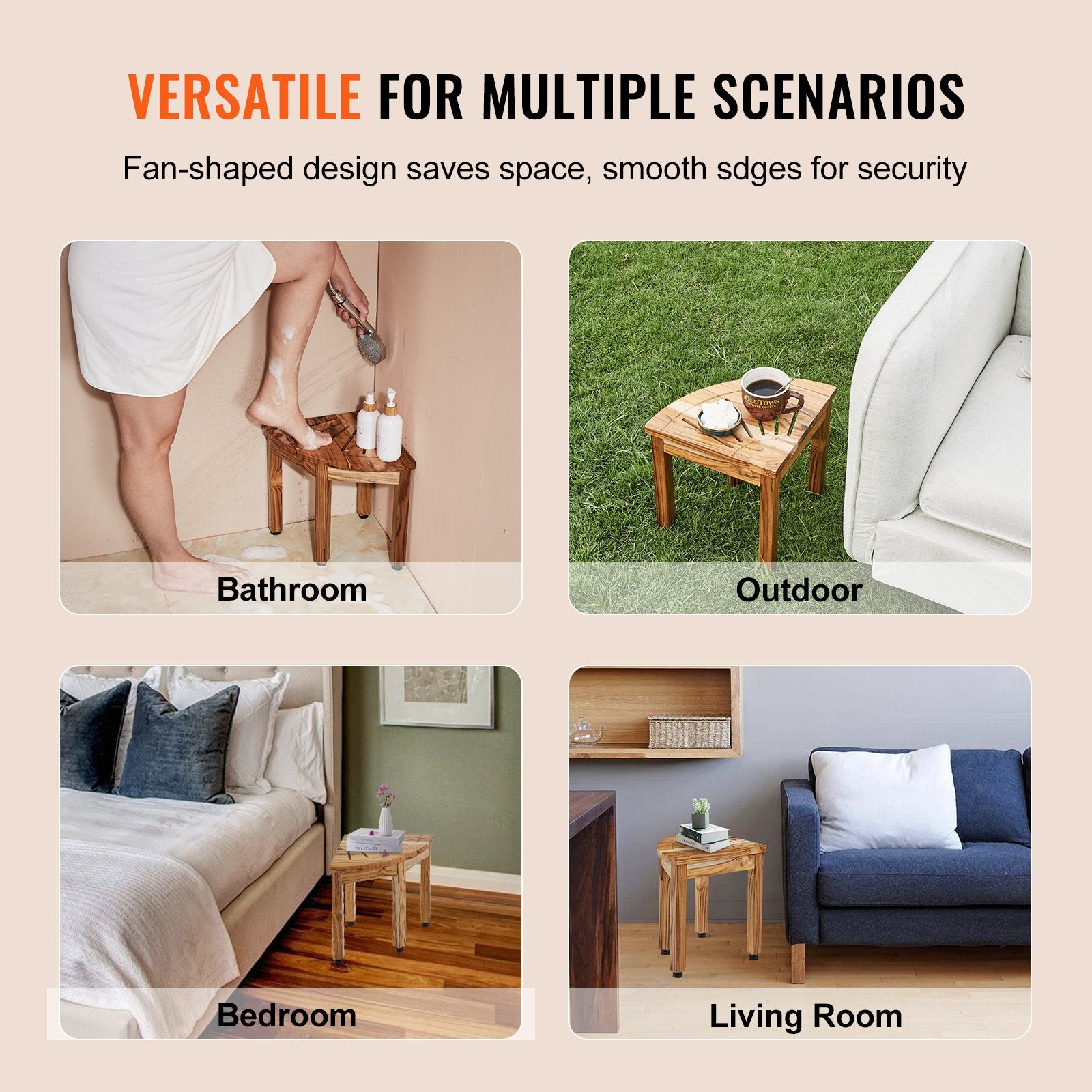 Corner Teak Shower Bench, 12.4" Height 11.5" Radius, 100% Teak Wood Corner Shower Beach, Mold-resistant, 300 LBS with Storage Shelf, Shower Stool for Inside & Outside Shower, for Bathroom