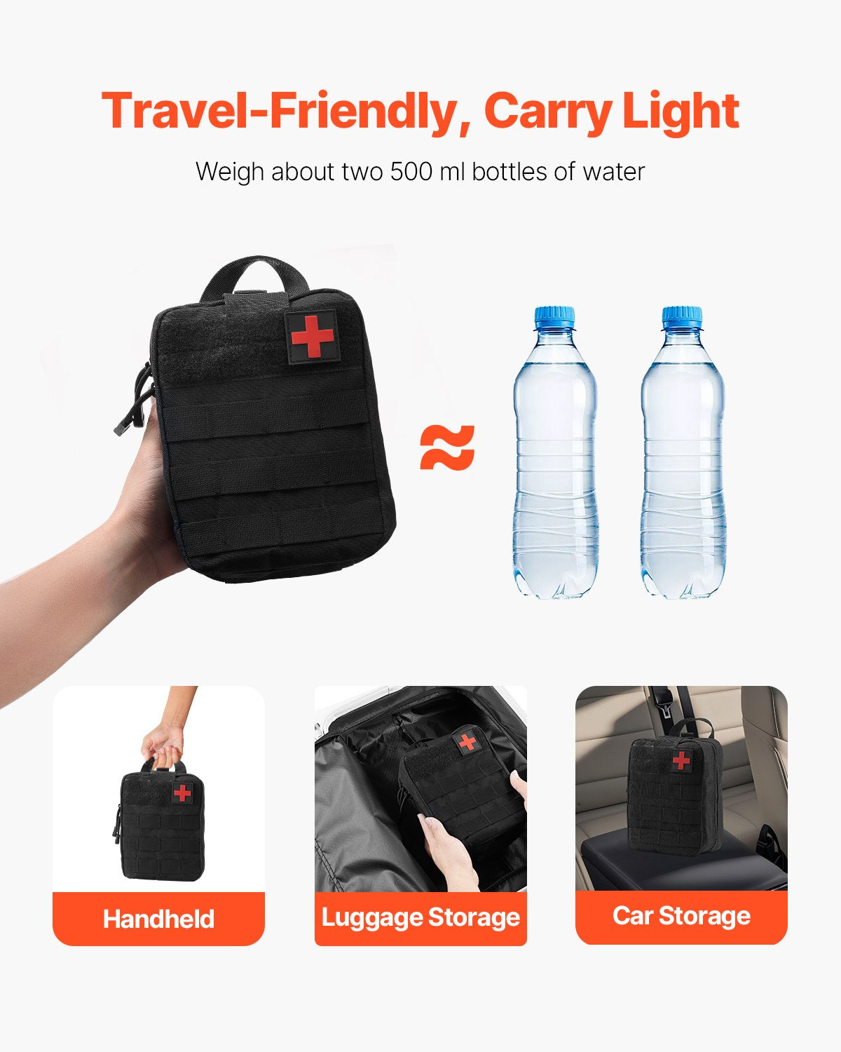 - Tough & Wear-Resistant Fabric: Crafted from 600D nylon, this camping first aid kit is built to last. Its high-strength, wear-resistant fabric stands up to the rigors of daily use, resisting tears, abrasions, and harsh environmental conditions