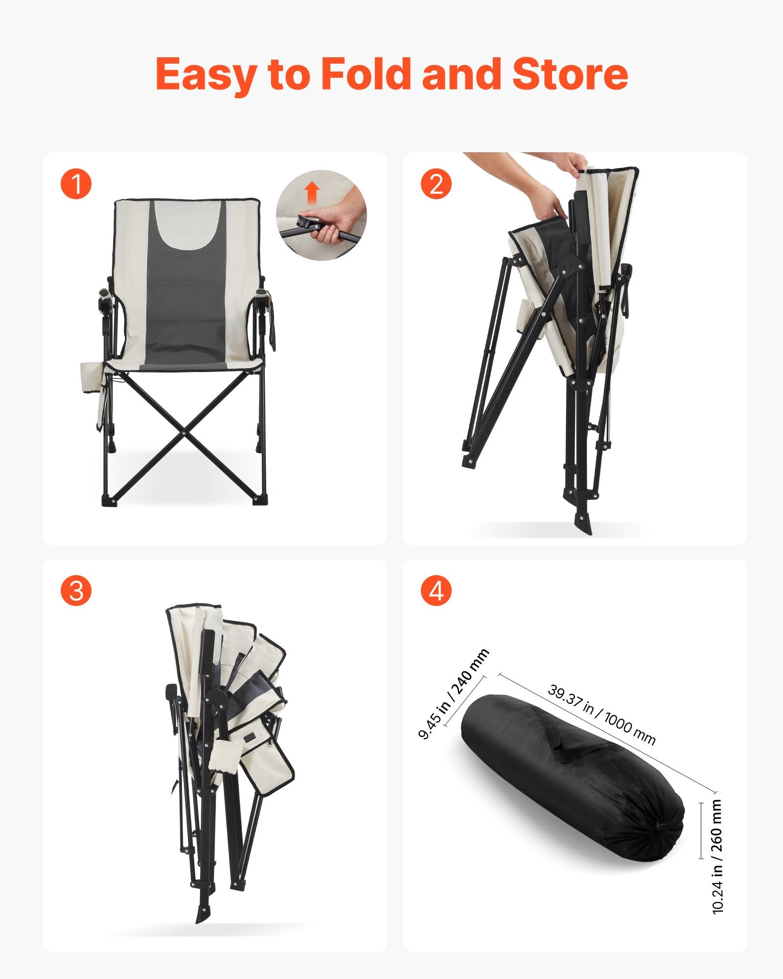 - Convenient to Use: The high back folding chair includes side pockets and a cup holder for phones, maps, bottles, or mugs—keeping essentials within reach and beverages ready to enjoy anytime.