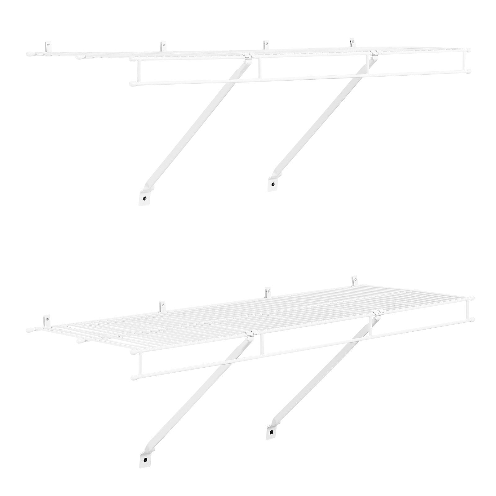 - Dual-Shelf Set: This wire shelf kit can fit various closet and wall spaces, expanding storage without replacing original cabinets. It supports side-by-side and spliced installations, and the two-pack set meets different width and height needs