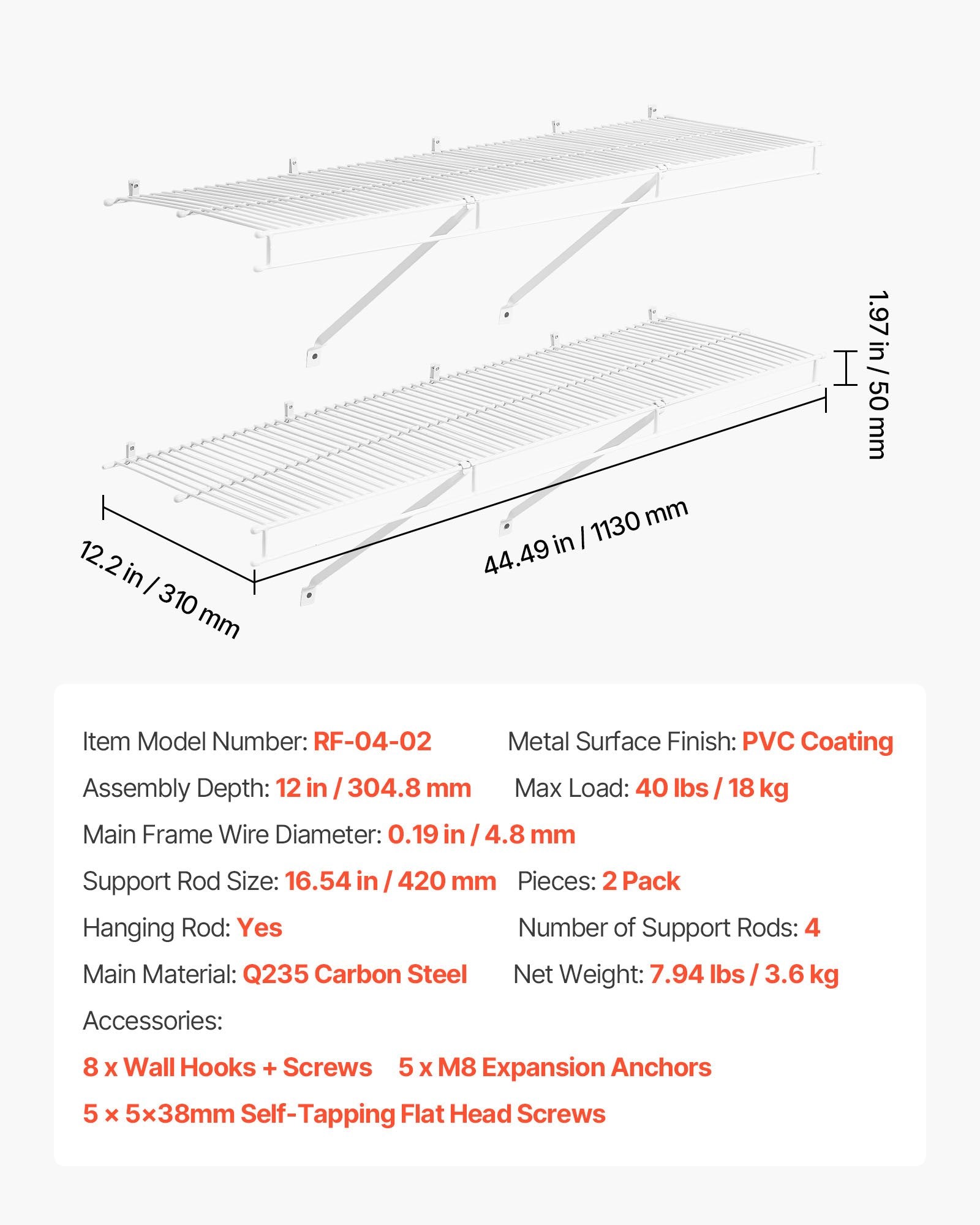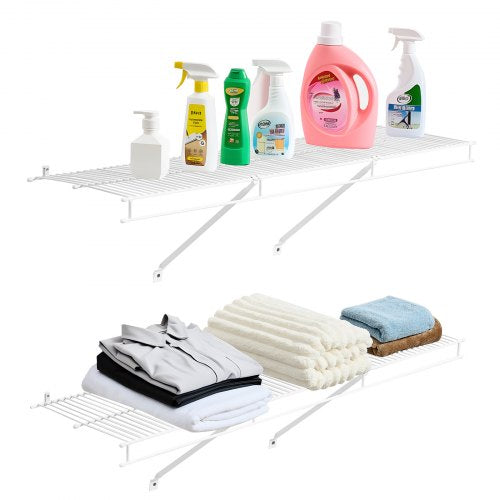 - Dual-Shelf Set: This wire shelf kit can fit various closet and wall spaces, expanding storage without replacing original cabinets. It supports side-by-side and spliced installations, and the two-pack set meets different width and height needs