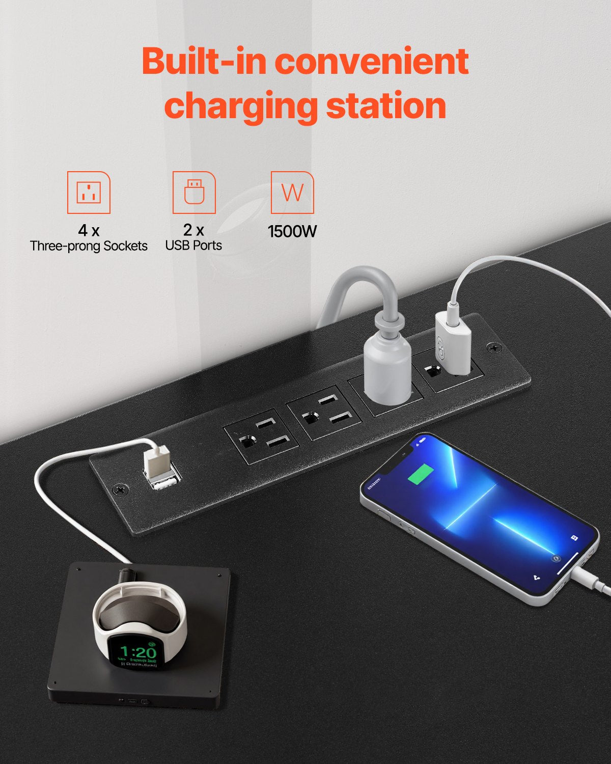 - Built-In Charging Station: This stand features a built-in power board with 4 outlets and 2 USB ports, plus a 6.6 ft / 2 m power cord to easily charge your TV, Wi-Fi router, or any other devices. The integrated cable management keeps everything tidy and tangle-free, making life more convenient.