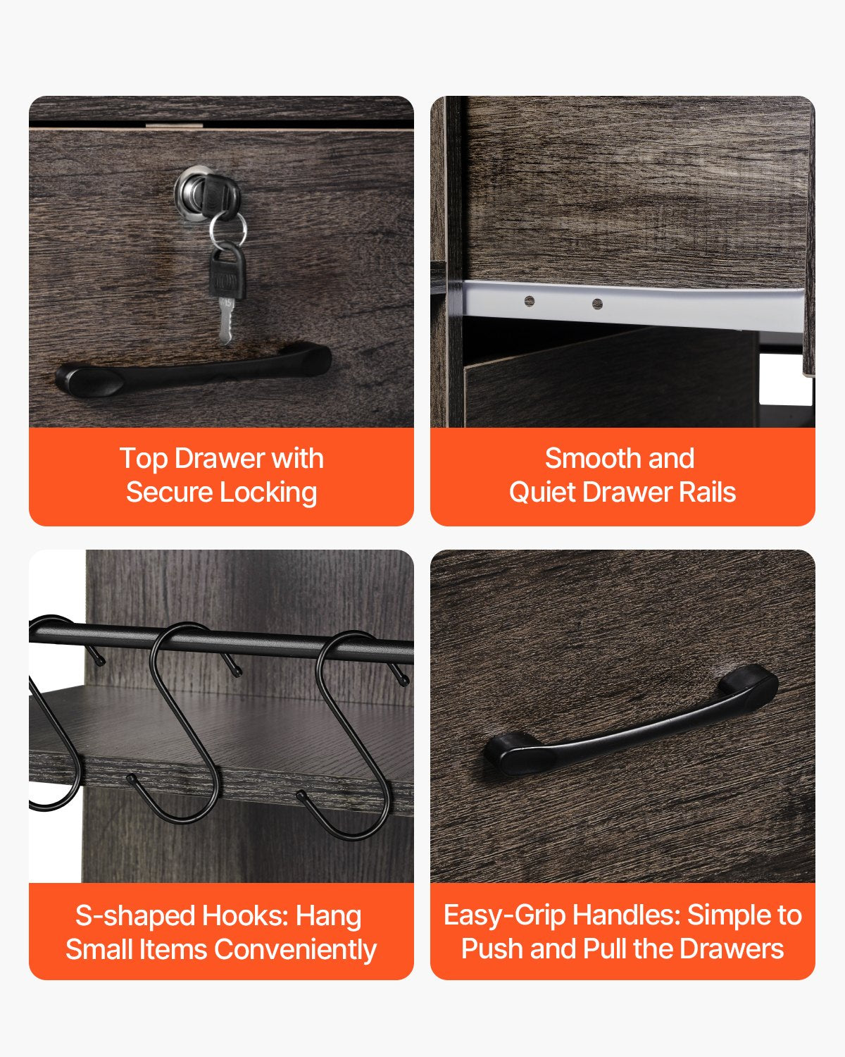 - Ample Storage Space: You can store files and various small items in the drawers, keeping everything organized and private. Confidential documents can be stored in the top locked drawer for added security. Frequently used documents and office supplies can be placed on the open shelves, and the 4 hooks provide a convenient place to hang small items