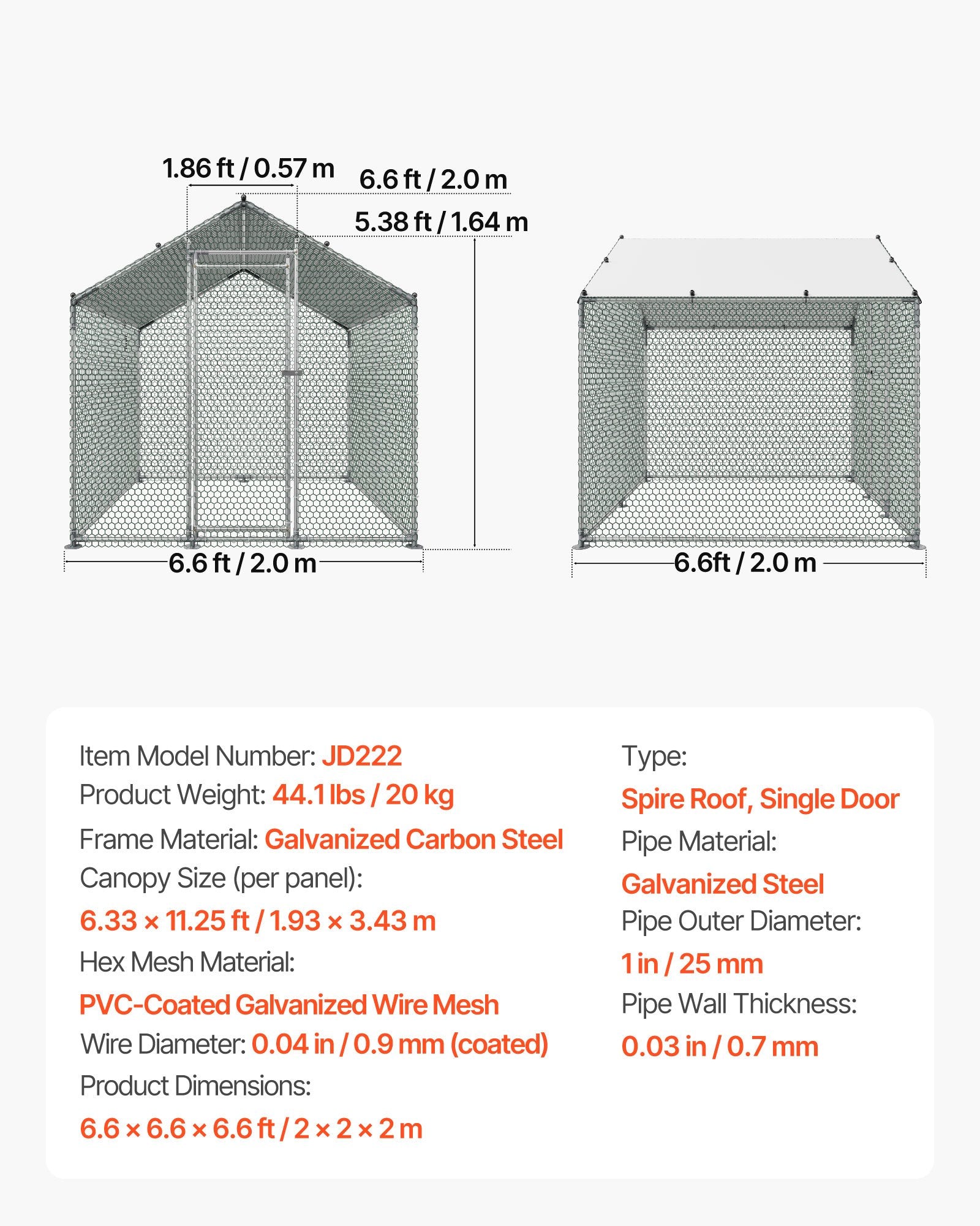 - Spacious Living Area: Offering a generous 6.56x6.56x6.56ft/2x2x2m of space, this large metal chicken coop features four-sided ventilation, creating a healthy and comfortable environment. The PE-coated canopy provides sun protection, waterproofing, and tear resistance, shielding your poultry from external elements.