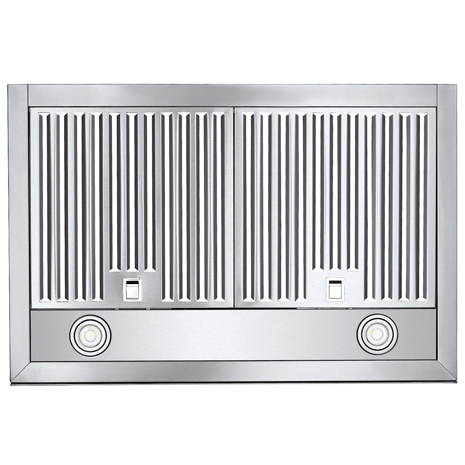 - Premium Stainless Steel: Crafted for durability and ease of maintenance, the vent hood features stainless steel. Its 2 detachable filters effectively capture grease and oil, and are dishwasher safe, making cleanup a breeze.