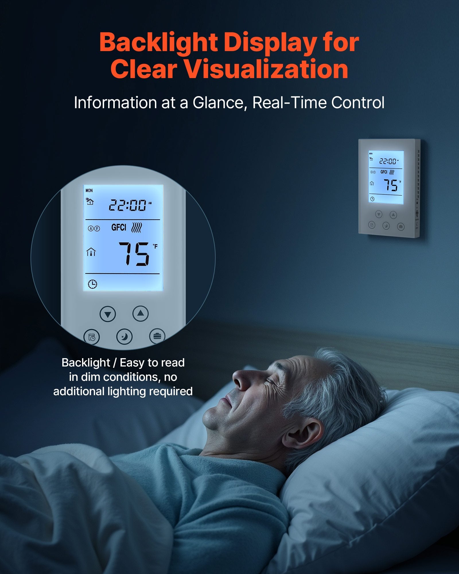 7-Day Programmable Thermostat, Home Thermostats for Radiant Underfloor Heating Cable,Heat Pump, Built-in GFCI & Sensitive Sensor, LED Screen with Backlight,Energy-Efficient,White