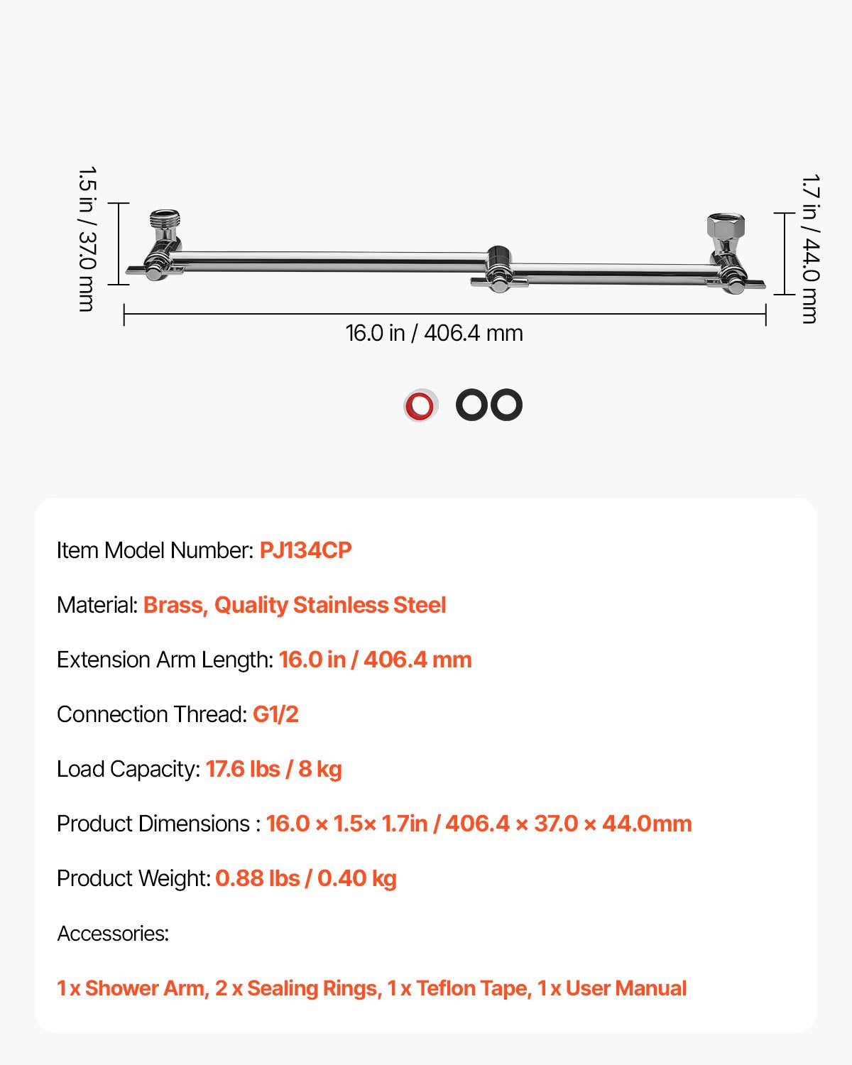 - 16-Inch Extended Reach: Our adjustable shower arm extender adds extra distance between your showerhead and wall, suitable for showerheads 12 inches or smaller. You can enjoy a spacious shower without having to bend down
