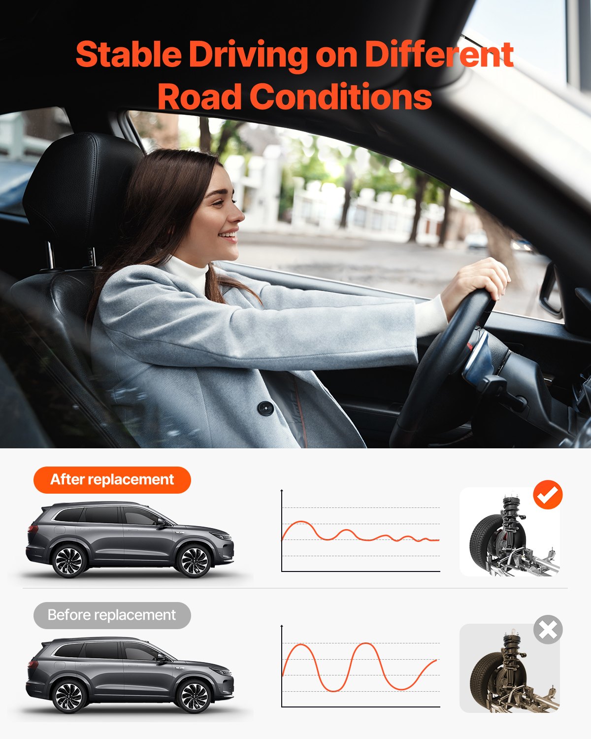 - Built to Last: Constructed from high-durability steel, our air struts absorbers ensure long-term stability and reliability. A rust-proof coating protects against rust and wear, making them ideal for different road conditions and weather types—no frequent replacements needed