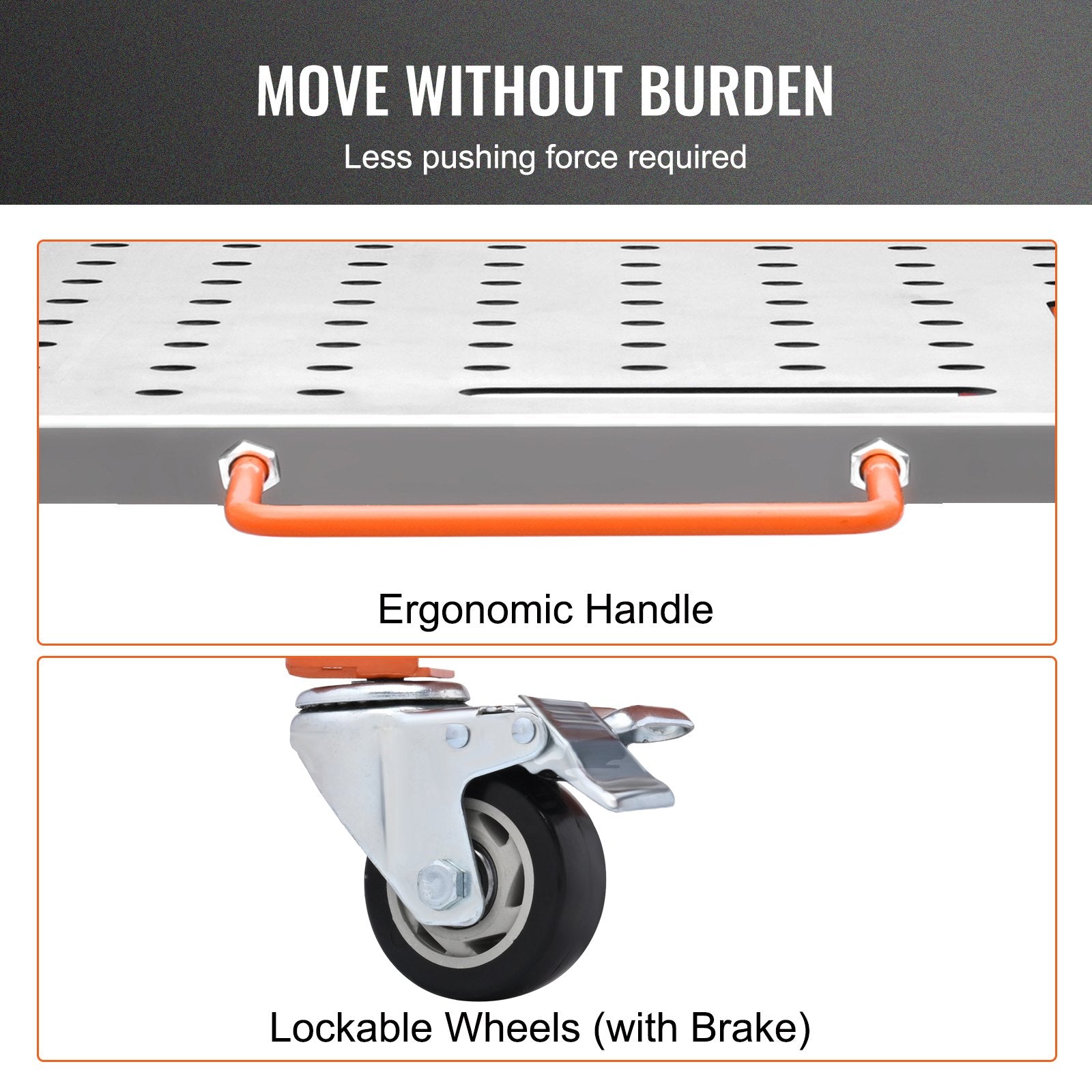 - Achieve Perfect Welds: Whether you're a metal hobbyist or a seasoned professional, the VEVOR moveable welding table offers a wide range of applications. Boasting 2 layers storage capacity and a spacious desktop area measuring 36" x 18", it accommodates diverse work needs, facilitating the welding of intricate and petite parts with ease.