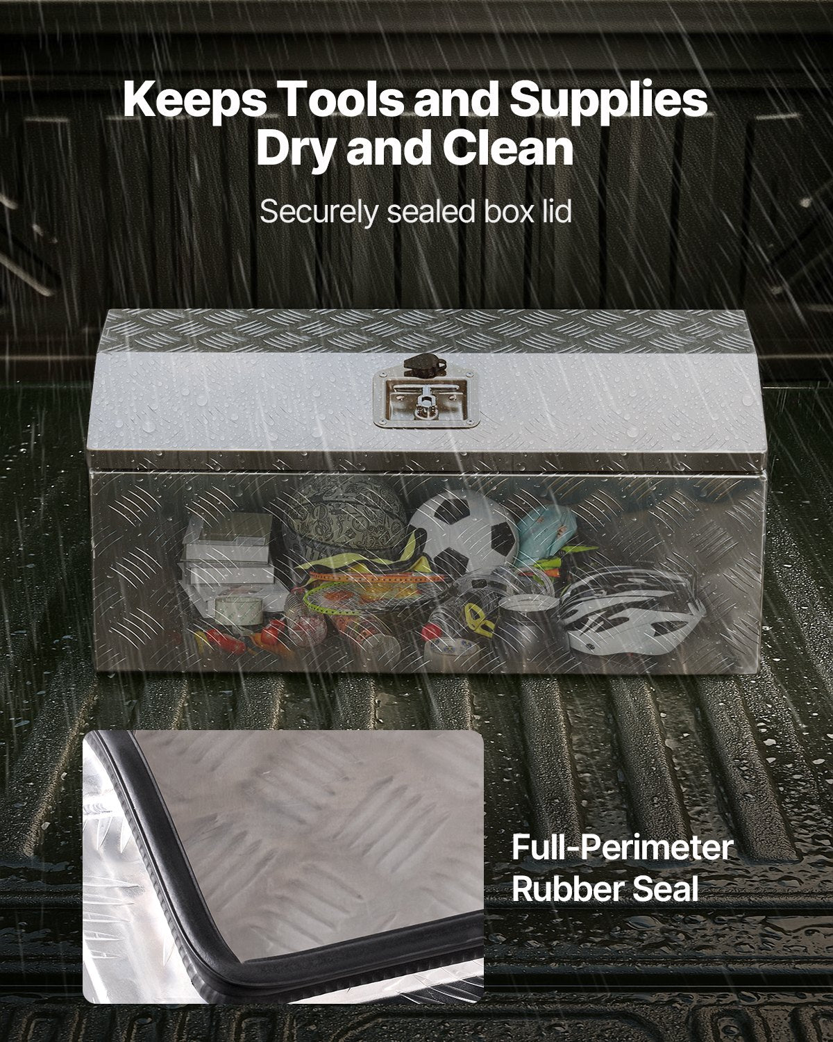 - Waterproof and Corrosion-Resistant: The aluminum tool box features a full-perimeter rubber seal, ensuring a tight seal that blocks rain and dust from entering. This keeps your tools dry even during heavy rain or dusty conditions