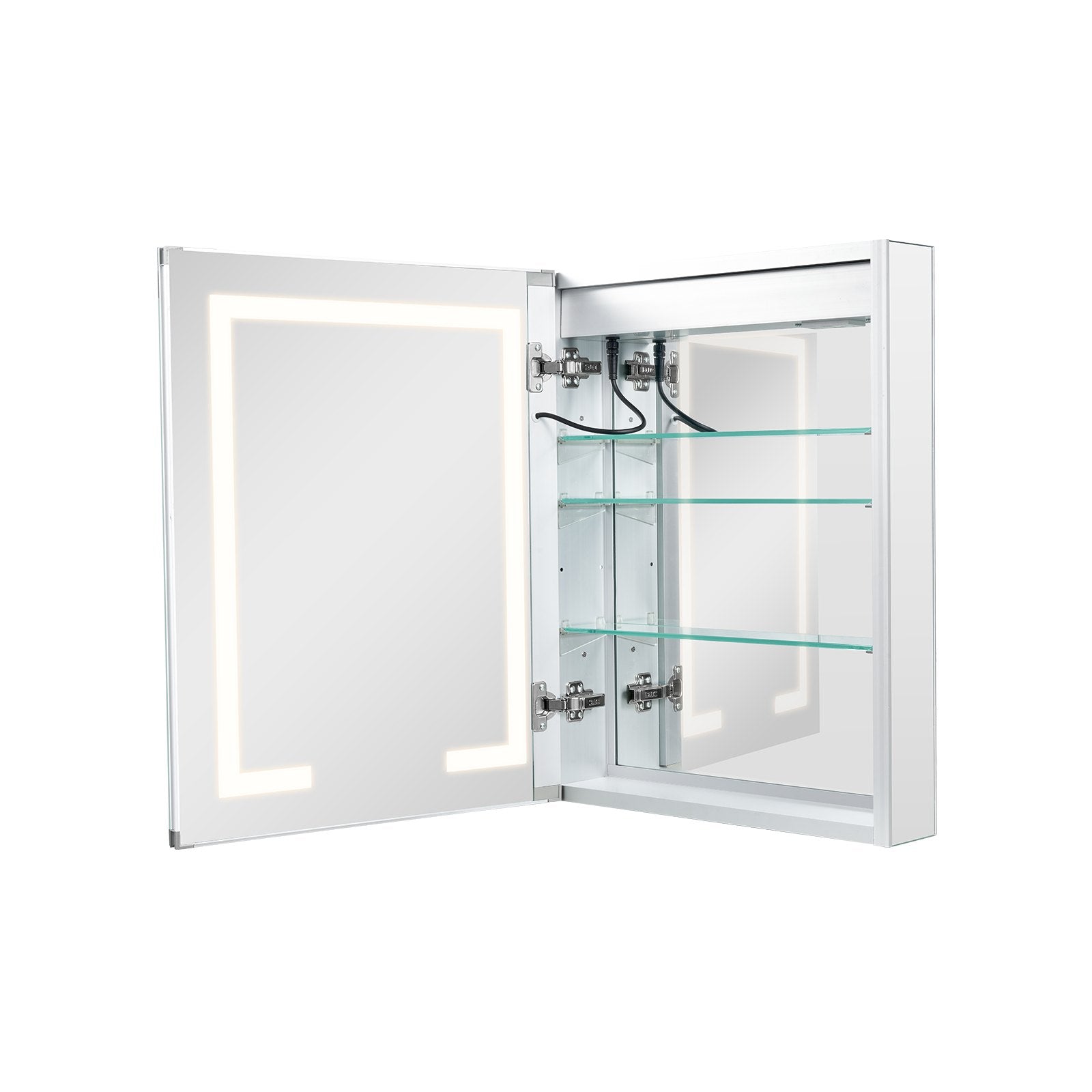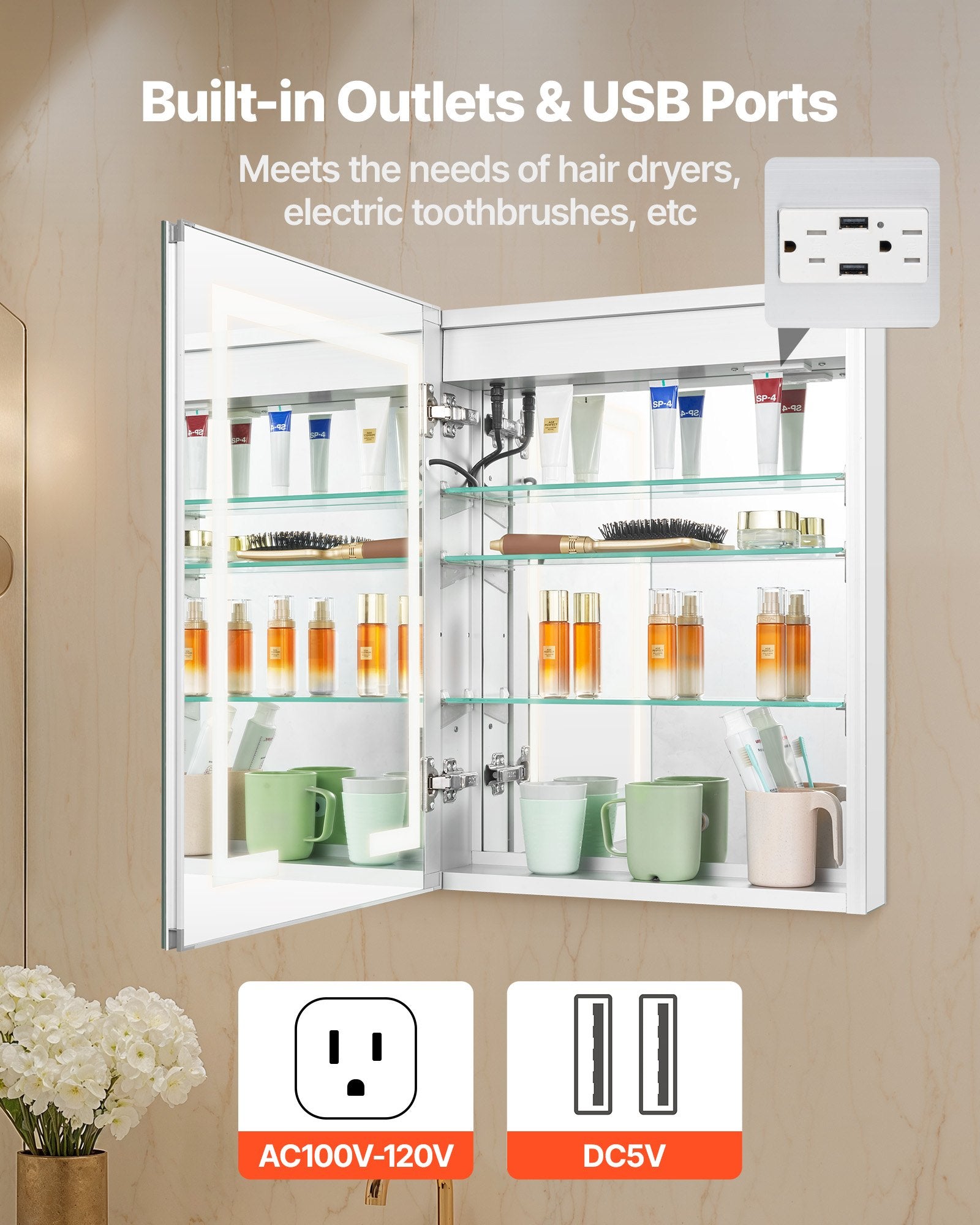 - Convenient Built-in Socket: The light-up mirror medicine cabinet is equipped with a built-in socket that includes two outlet types, exclusively for powering razors, offering greater convenience for everyday use.