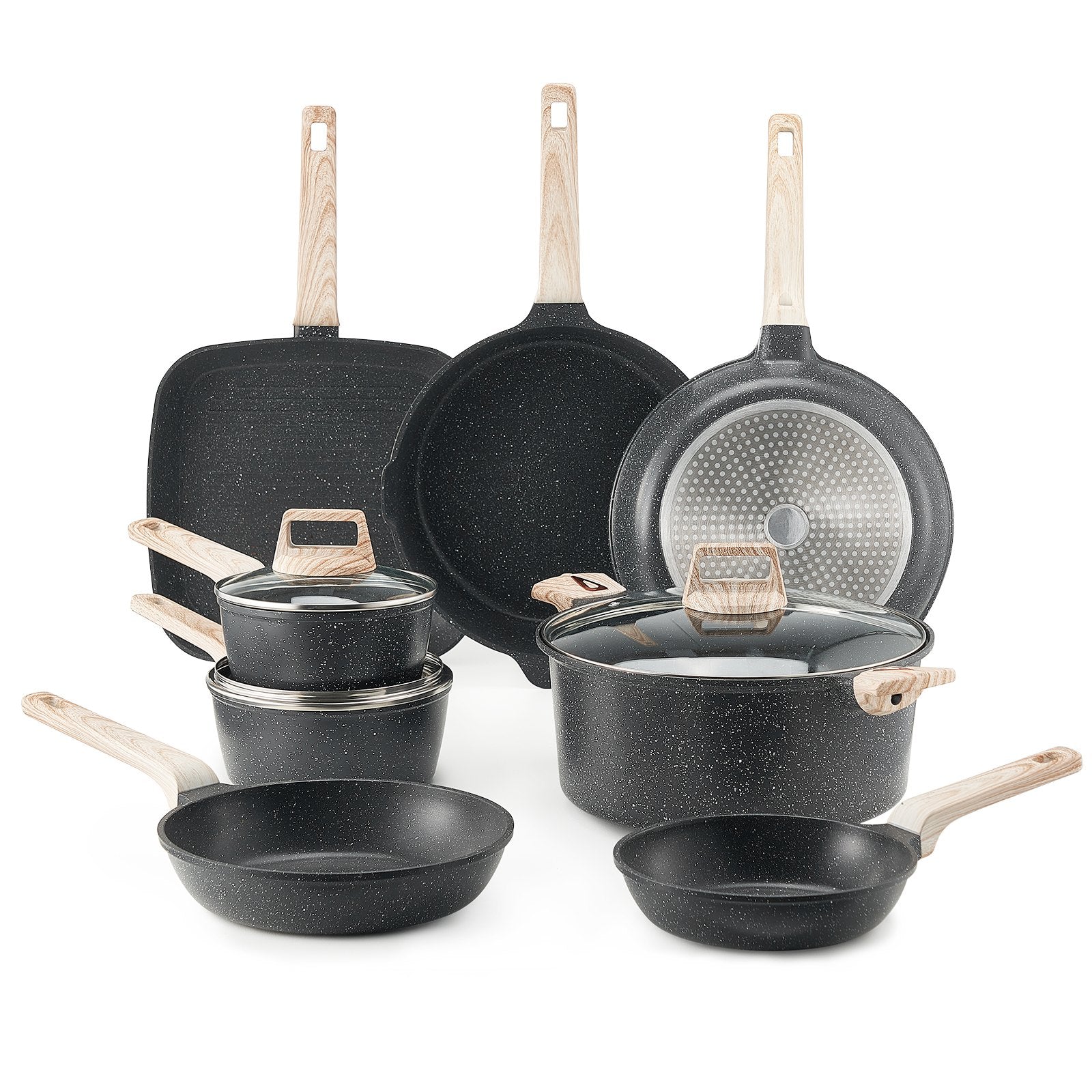 - Premium Material: Made with a Maifan stone non-stick coating, this cookware set ensures easy food release and effortless cleaning. The interior withstands temperatures up to 380°C, making it reliable for daily use. The cookware does not include lead, cadmium, and PFOA. Cook with less oil for a healthier meal experience