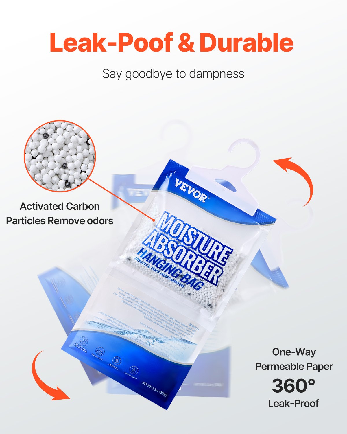 - Moisture & Leak Prevention: The added activated charcoal in these dehumidifier bags effectively absorbs dampness and helps prevent unpleasant smells, while the high-quality moisture-locking paper ensures no leakage, giving you a hassle-free experience.