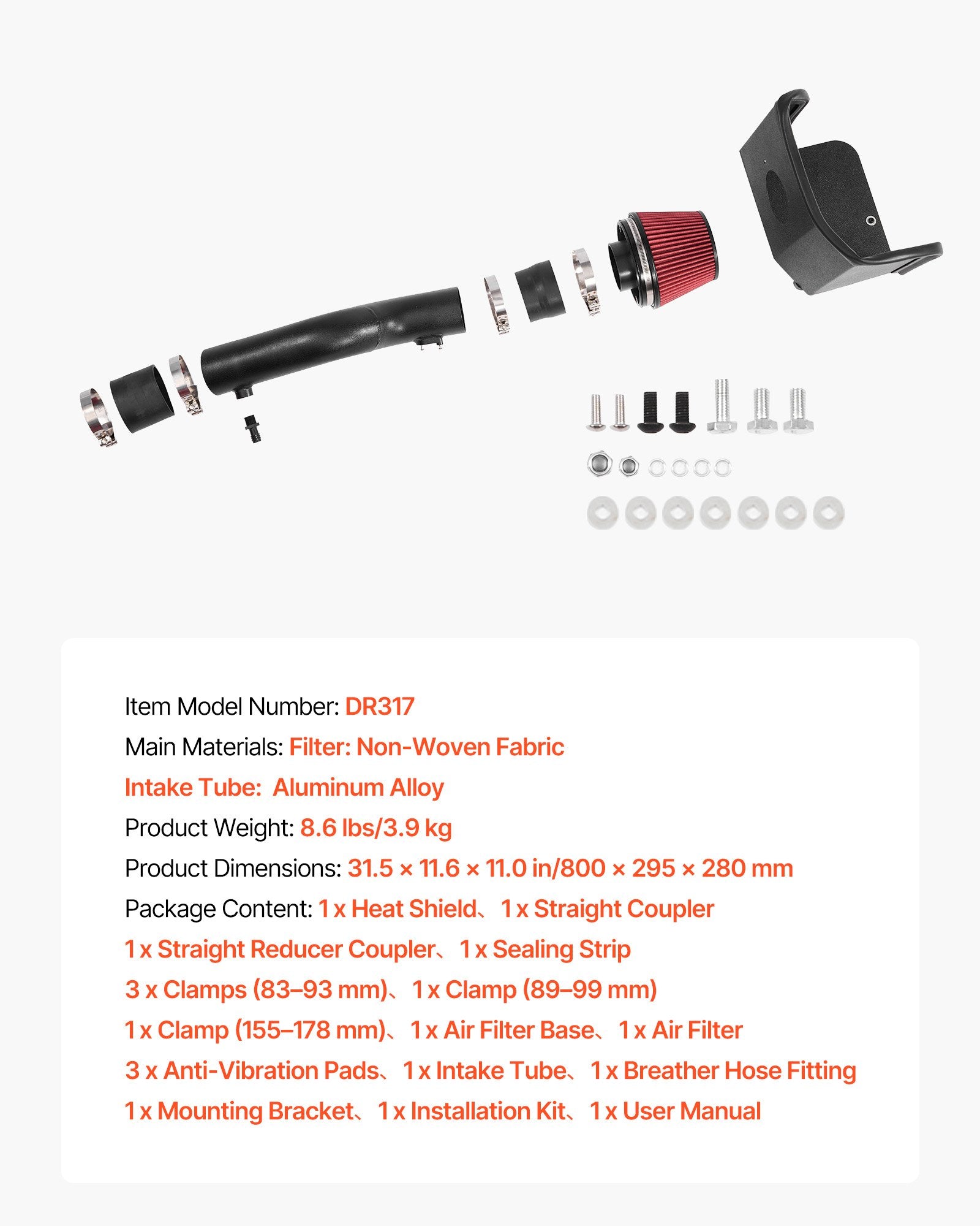 - Intake Tube Material: Aluminum Alloy
