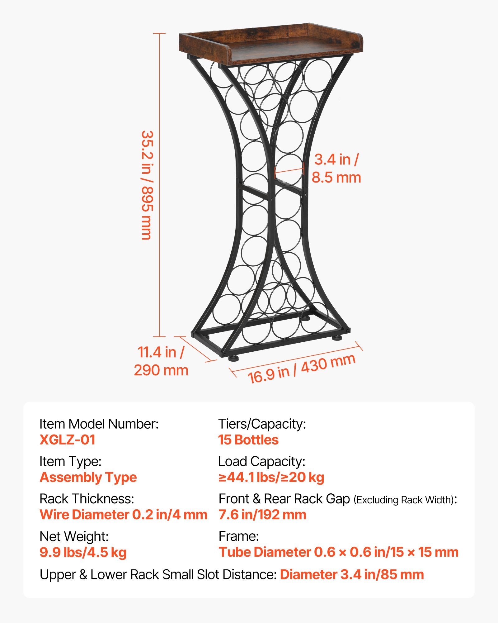 - Compact Wine Rack: This independent freestanding wine rack free standing floor can hold up to 15 bottles, with no fixed layers for flexible arrangement. It is ideal for organizing and displaying your wine collection