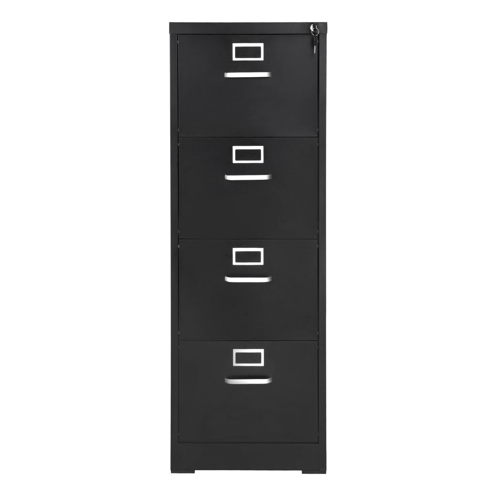 4 Drawer File Cabinet with Lock, Metal Vertical Filing Storage Cabinets for Home Office, Heavy-Duty Cabinet with Detachable Hanging Rod, for A4/Letter/Legal Size File, Easy Assembly (Black)