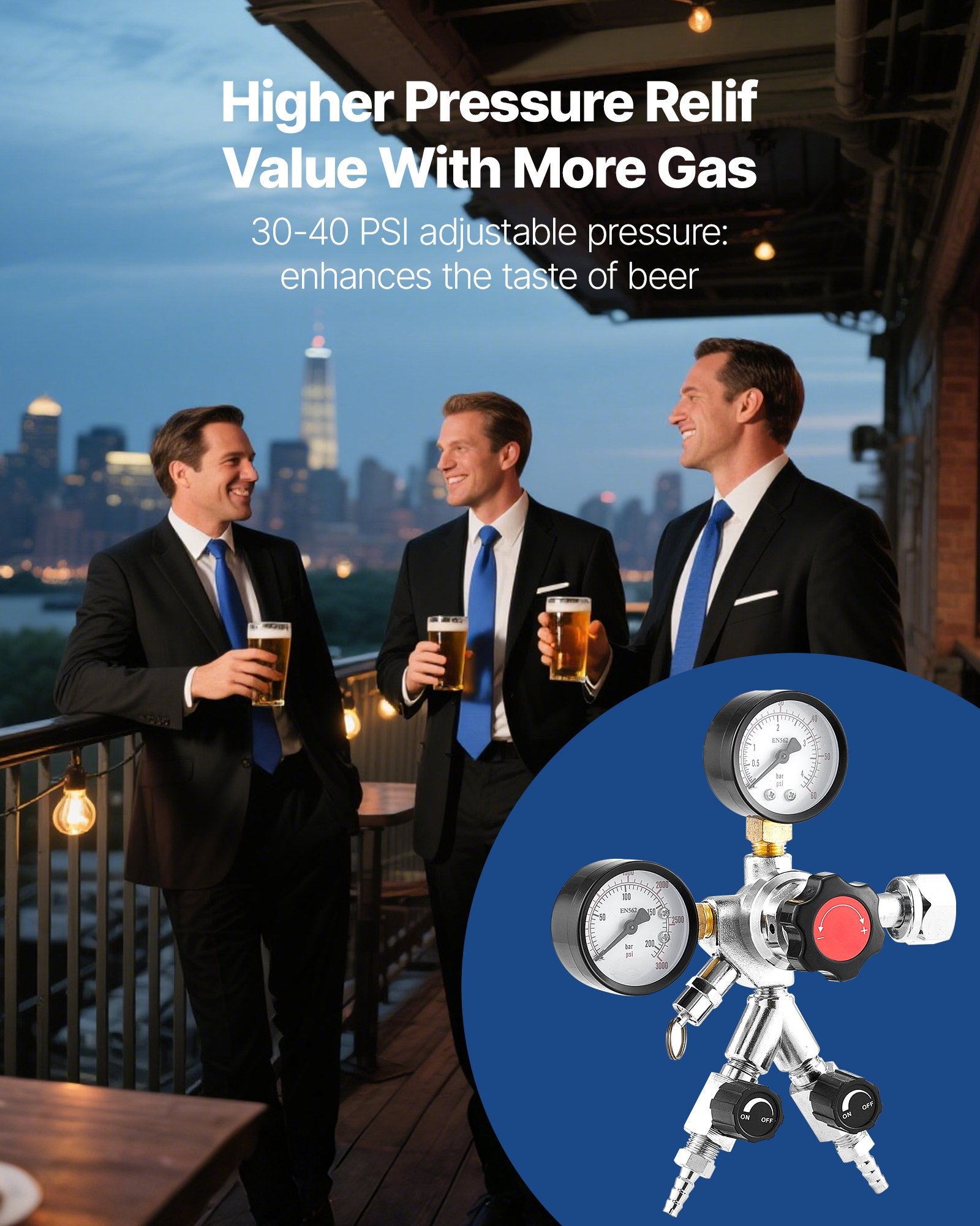 - Stable Pressure Control: This CO2 tank regulator features a pressure relief valve that automatically vents between 50 and 65 PSI, preventing unwanted pressure release at lower levels. This thoughtful design helps maintain consistent beer quality and output