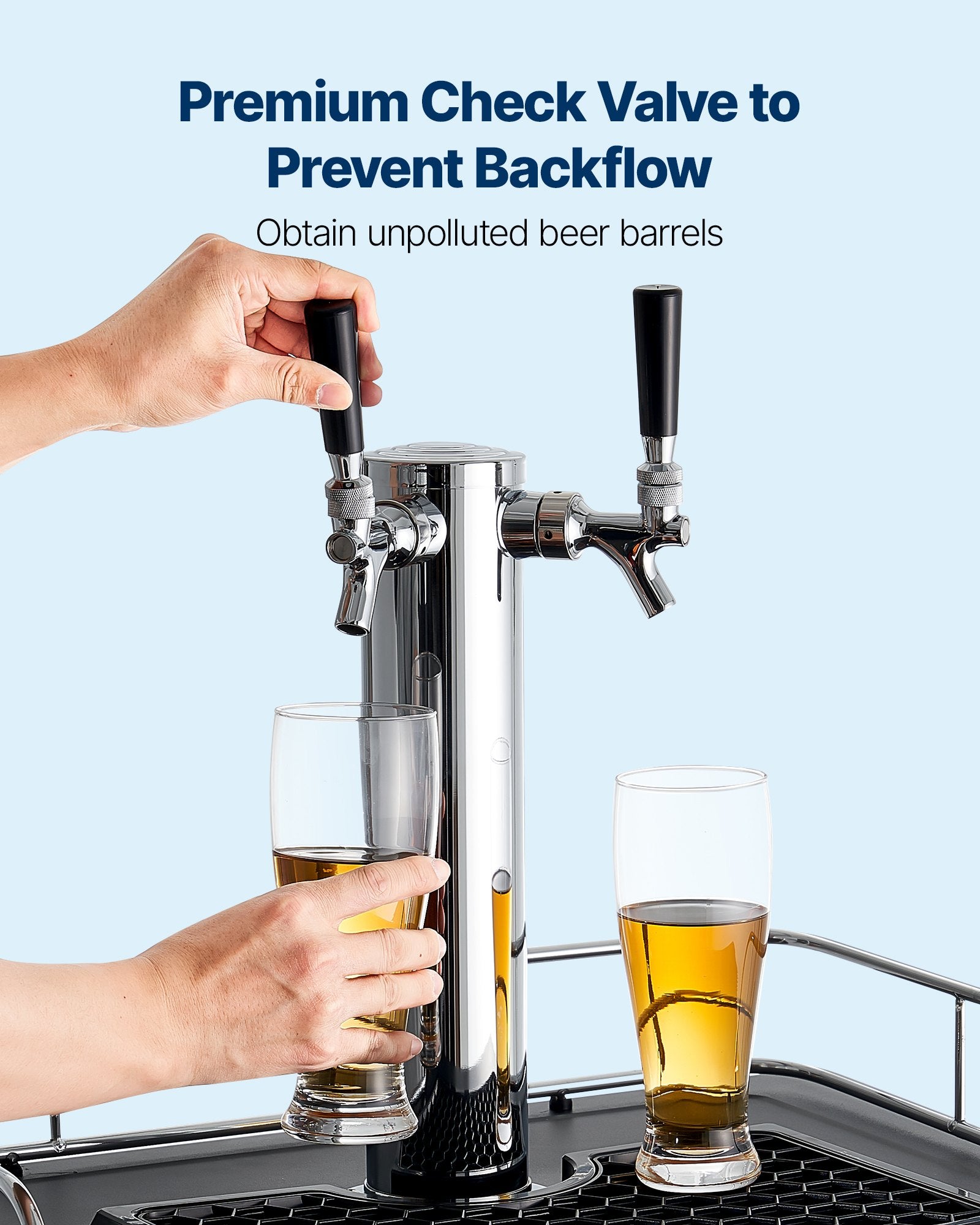 - Backflow Prevention: Equipped with 2 check valves, our CO2 regulator for kegerators avoids beer backflow caused by pressure issues. This design ensures a smoother, more stable brewing process while keeping your kegs cleaner
