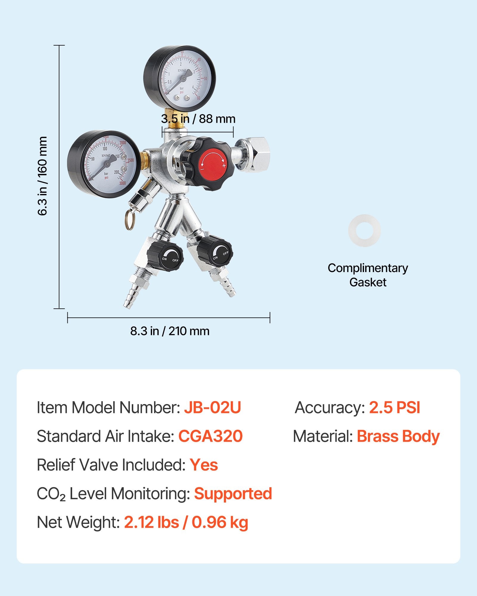- Wide Compatibility: Featuring a CGA320 inlet connection, this CO2 pressure regulator supports 8 mm hose fittings and is compatible with a wide range of beer kegs. It offers quick and easy installation, making your brewing process more efficient