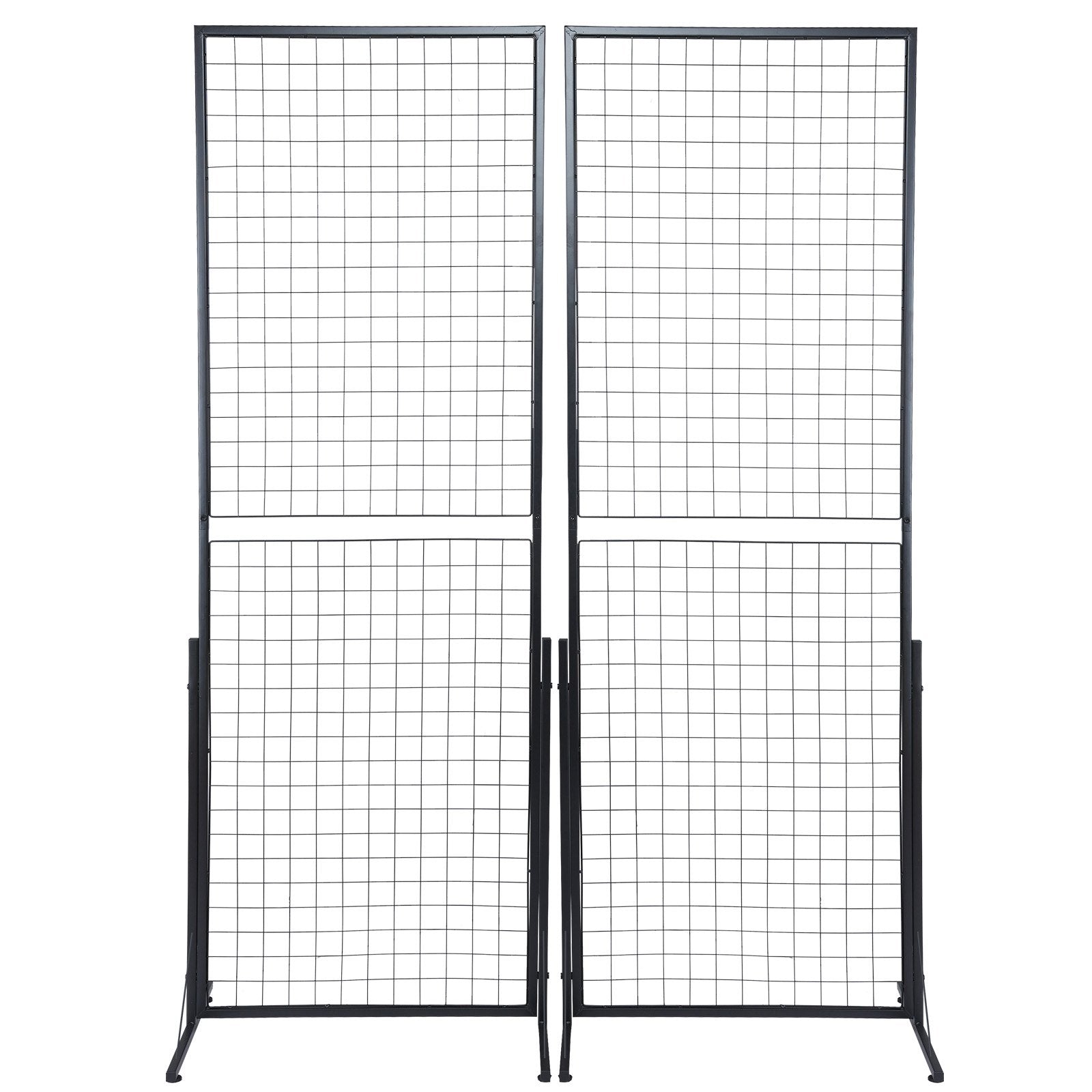 2' x 5.6' Grid Wall Panels Tower, 2 Packs Wire Gridwall Display Racks with T-Base Floorstanding, Double Side Gridwall Panels for Art Craft Shows, Retail Display with Extra Clips and Hooks