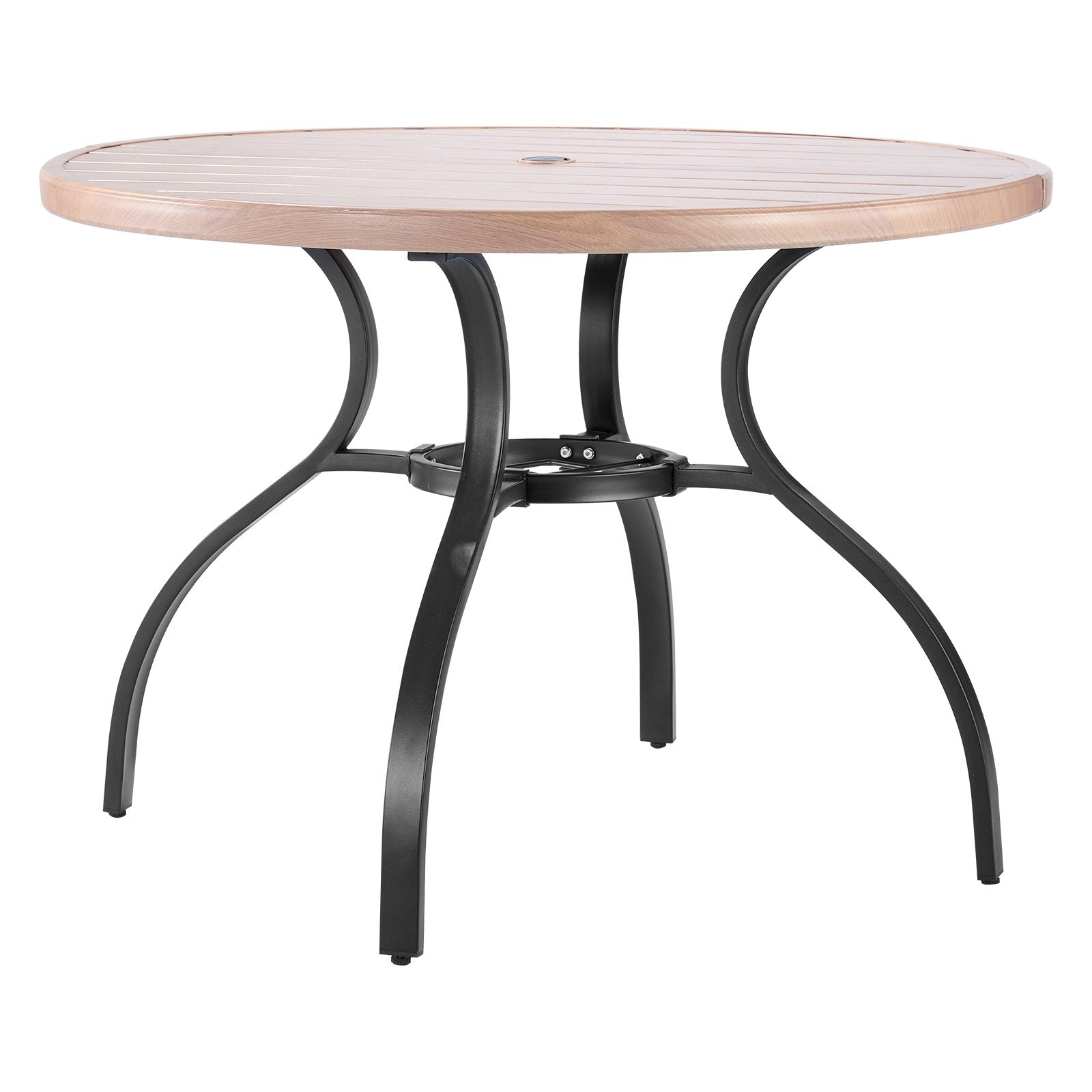 Outdoor Patio Dining Table, 41 inch Round Wood-Like Steel Slat Backyard Bistro Coffee Tables for 4, with 1.5 in Umbrella Hole, Outside All-Weather Large Furniture for Lawn Garden Porch, Gray