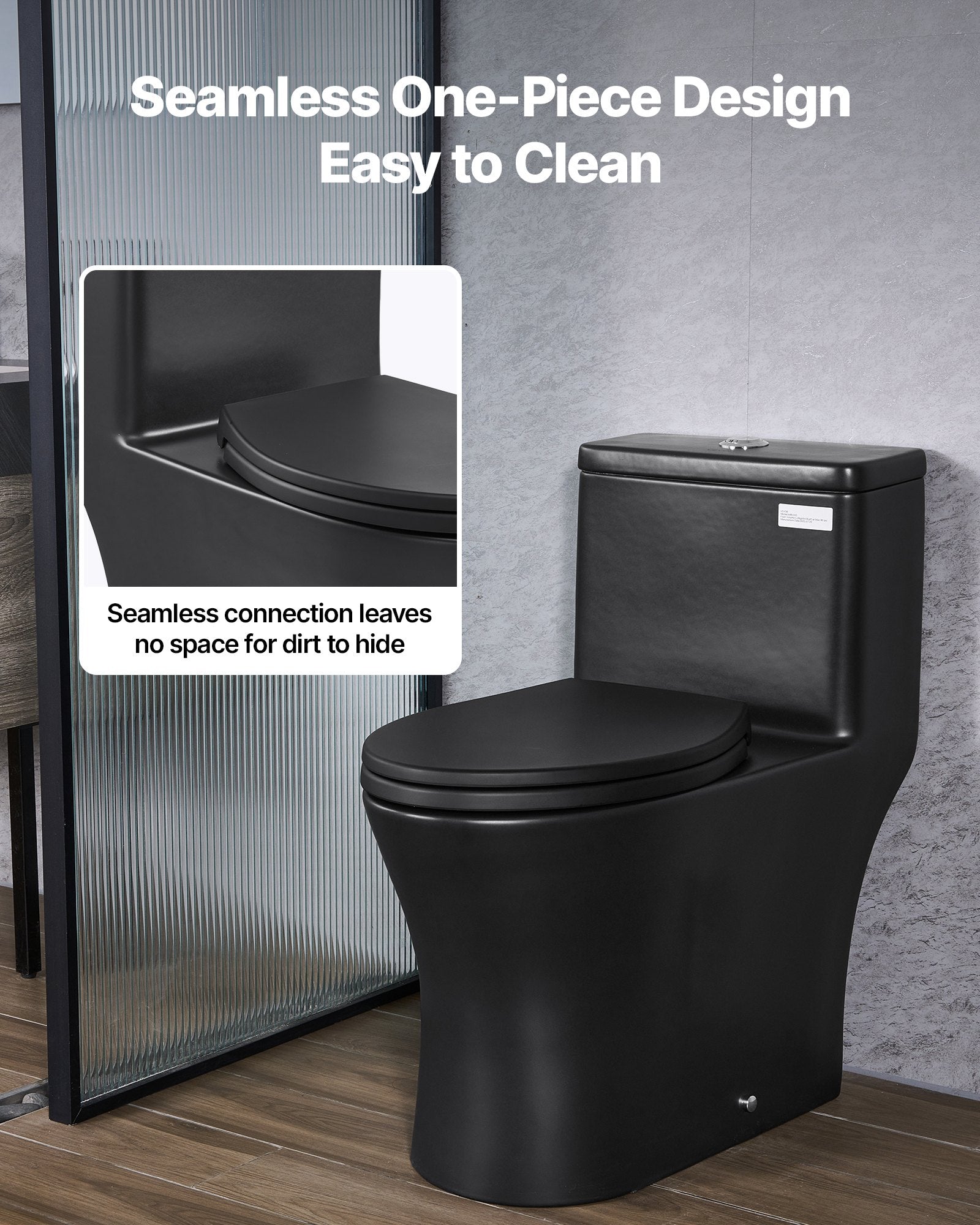 - Clean Made Simple: Our one-piece toilet offers a smooth, seamless design. Without tank-to-base gaps, it reduces hidden dirt areas, making cleaning quicker and more effective while keeping your bathroom looking fresh longer