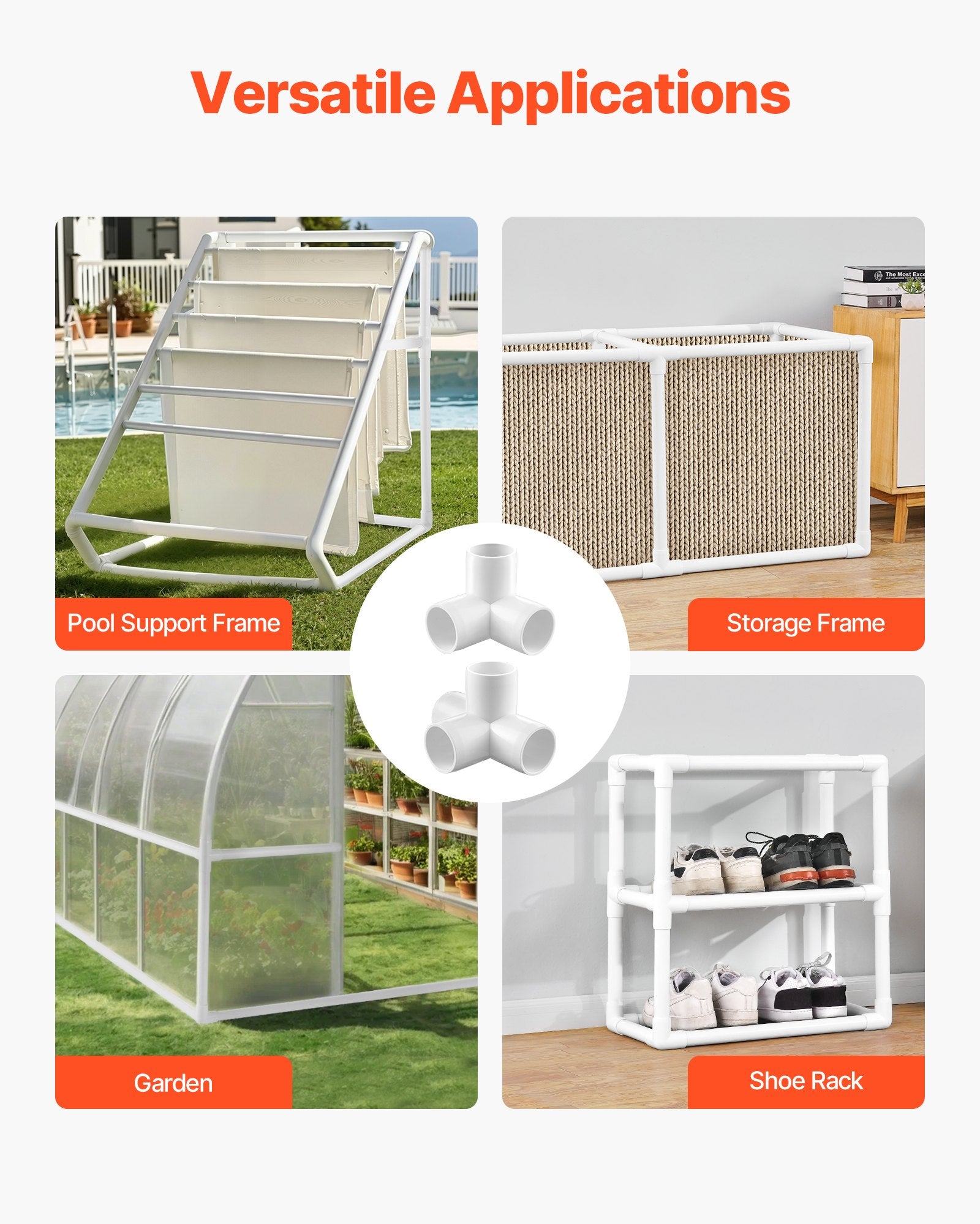 - Wide Applications: Perfect for a wide range of uses – whether building an animal cage, shoe rack, garden support frame, or storage frame, these PVC pipe corner connectors provide reliable connections for various DIY projects