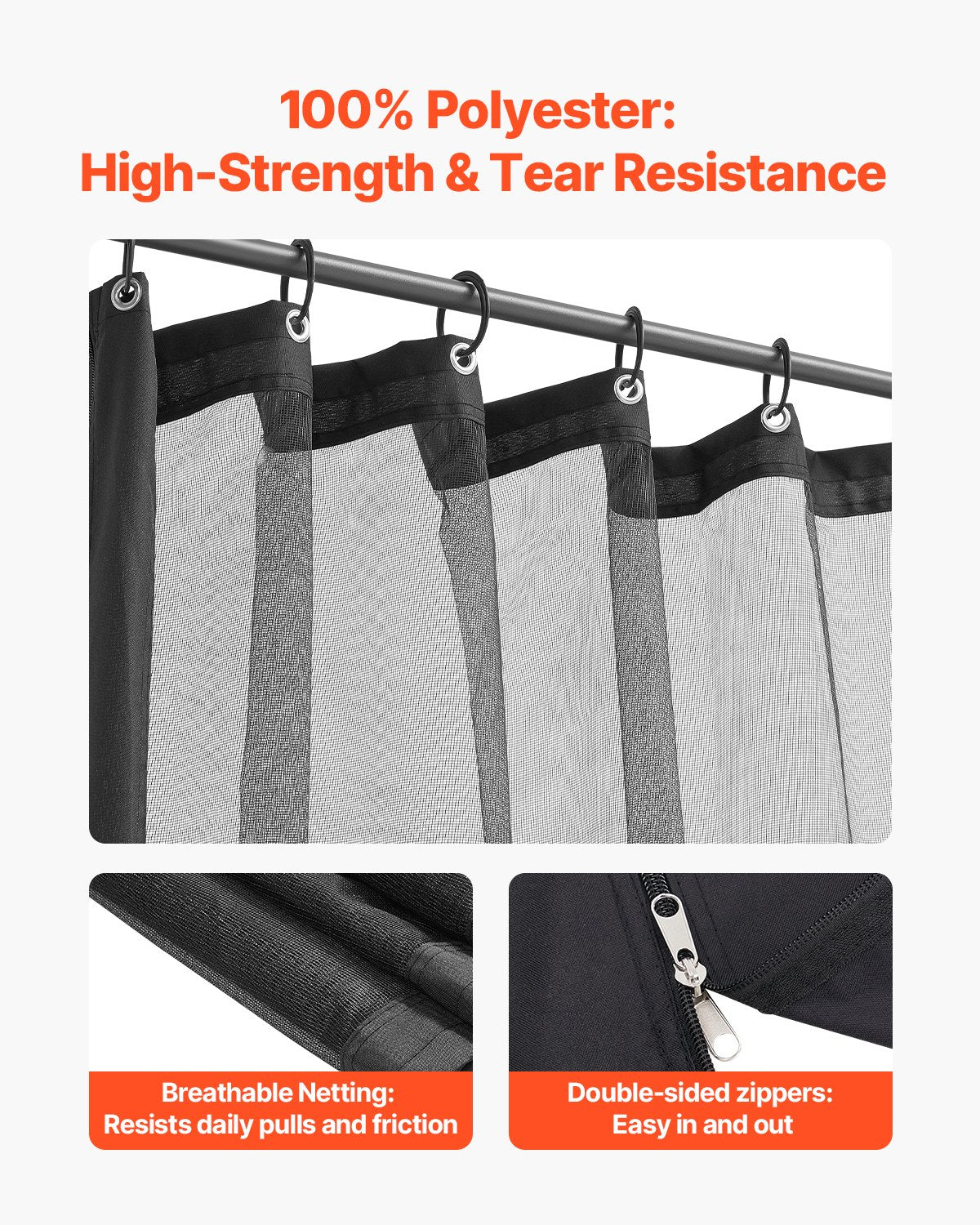 - Thoughtful Design: Each side features double-sided zippers for easy access. The mesh patio netting's edges are equipped with fastening straps at the top, middle, and bottom, with aluminum grommets for easy hanging and tear resistance. We provide both plastic hooks and hanging rings as mounting options, allowing you to choose the best method to secure the net to your gazebo.