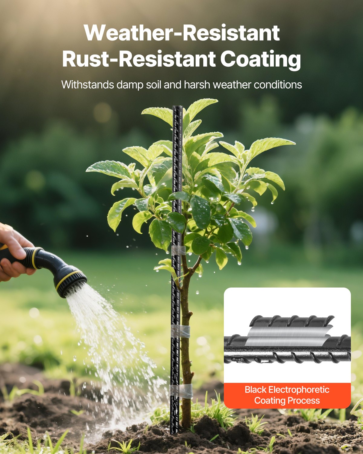 - Durable Galvanized Steel: Built with HRB400E galvanized steel core & black powder coating, these rebar stakes provide double rust protection. They maintain long-term strength while in harsh conditions like damp & salty-alkaline soil, and sun exposure