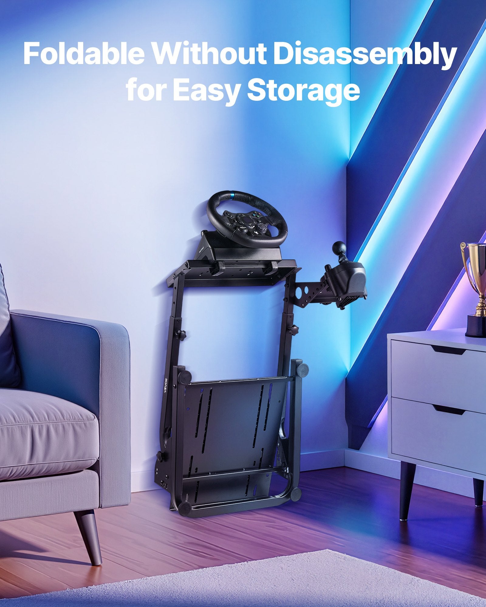 - Quick Folding Design: This racing simulator cockpit folds easily without disassembly to save space. Just fold and store it effortlessly. Whether your gaming area is large or small, this racing wheel stand adapts and keeps your setup neat