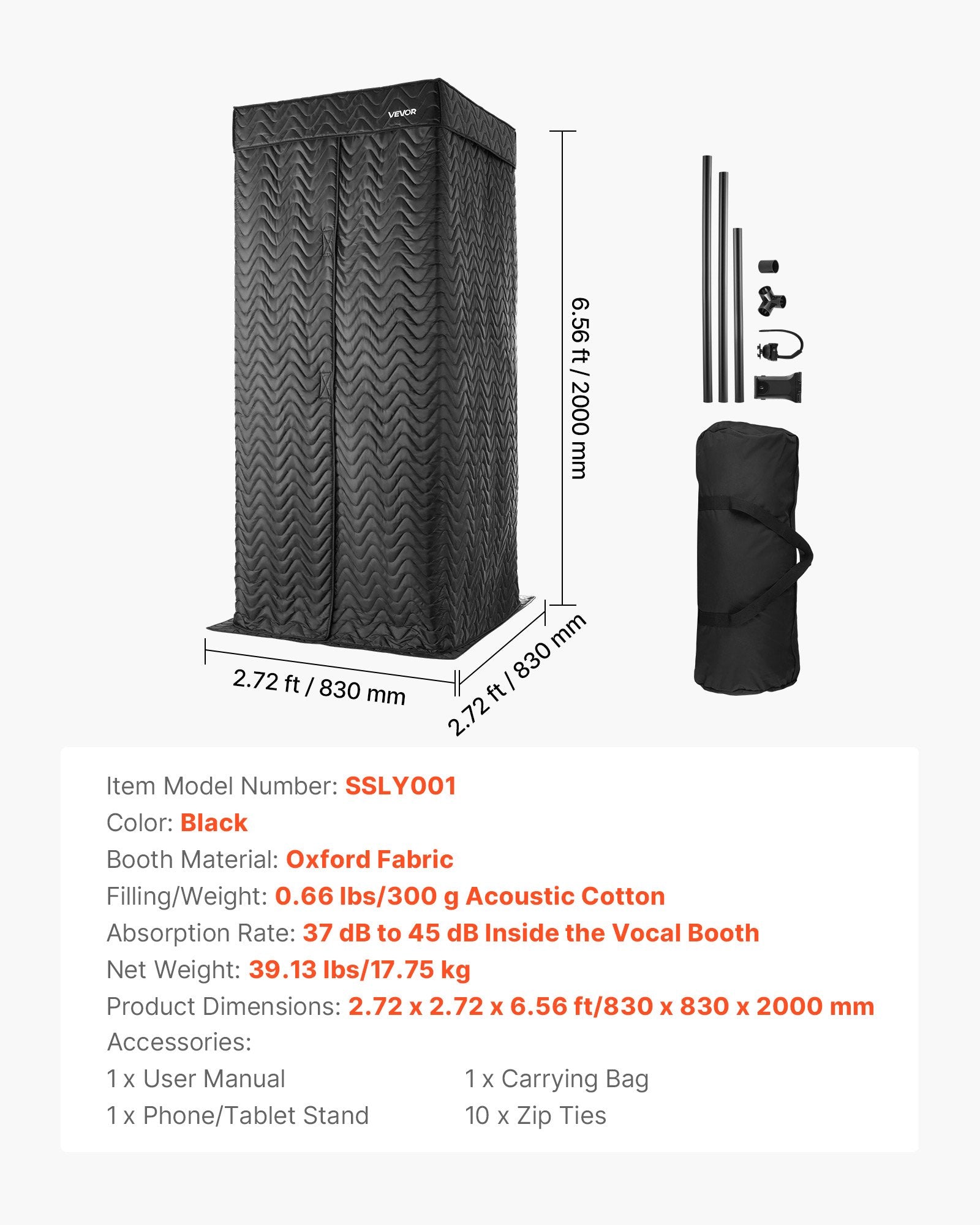 - More Space, Less Stress: Measuring 2.72 x 2.72 x 6.56 ft in size, our portable studio booth has space for seated and standing sessions or instrument play, while its compact design lets you set it up in a living room, bedroom, or any unused corner