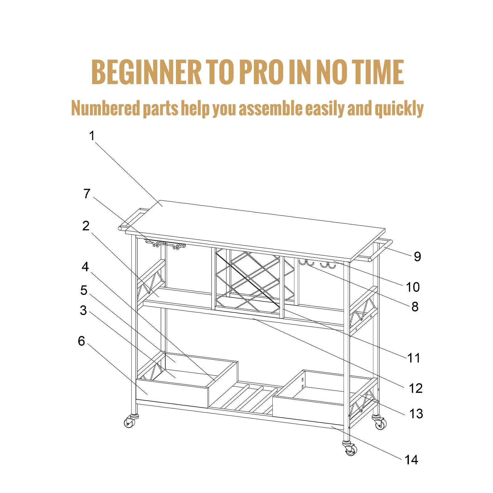 - Carefree Assembly: The liquor cart provides all necessary accessories and detailed instructions. It comes with unified screws and clear and brief instructions. All parts are provided with labeled numbers, and each assembly step is listed clearly. You can easily understand the assembly process, wasting little time and energy. Start preparing your favorite wines and dishes!