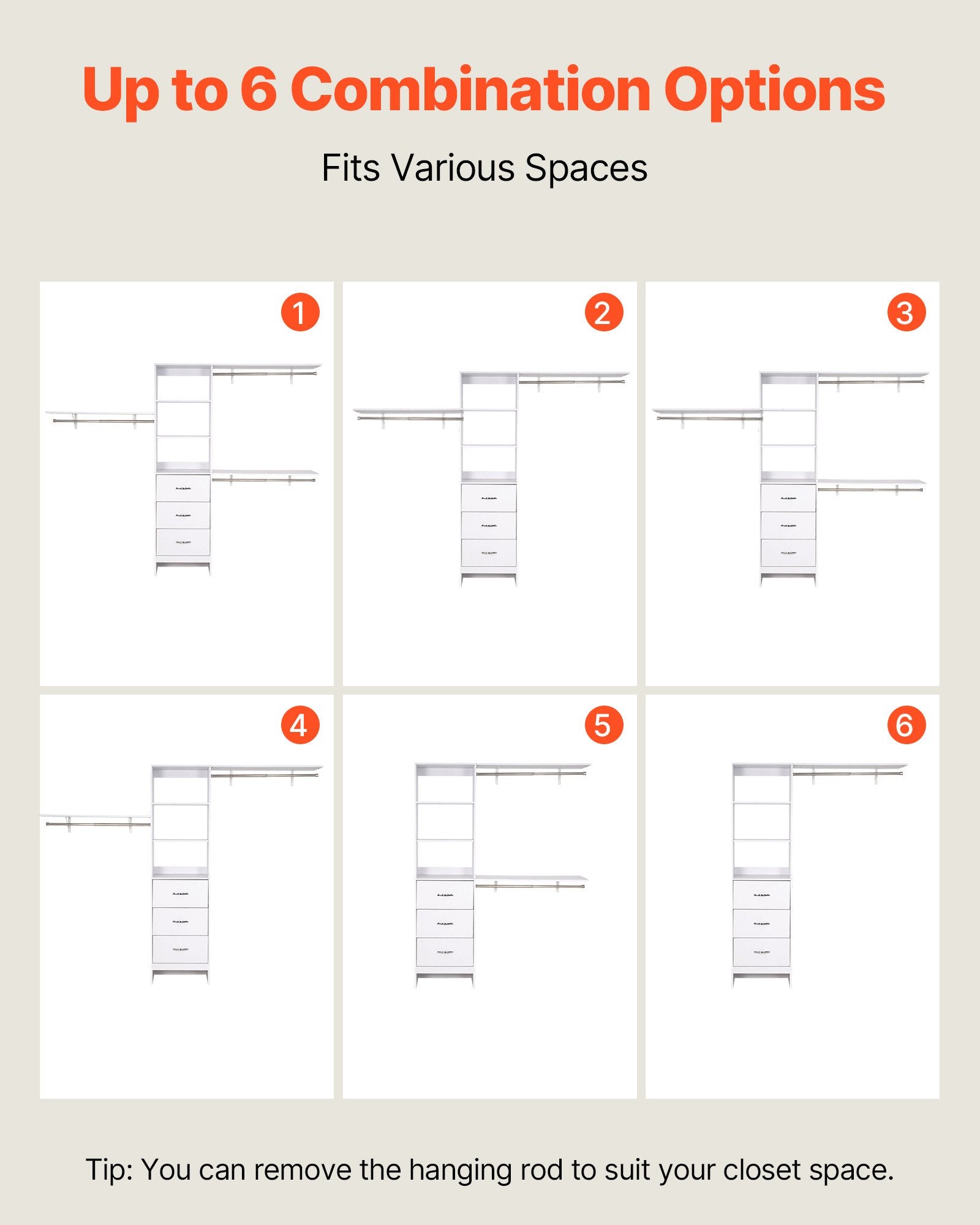 - Flexible Configuration: Rods can rotate or be removed to fit your closet space. Multiple layouts make it suitable for bedrooms, laundry rooms, or walk-in closets
