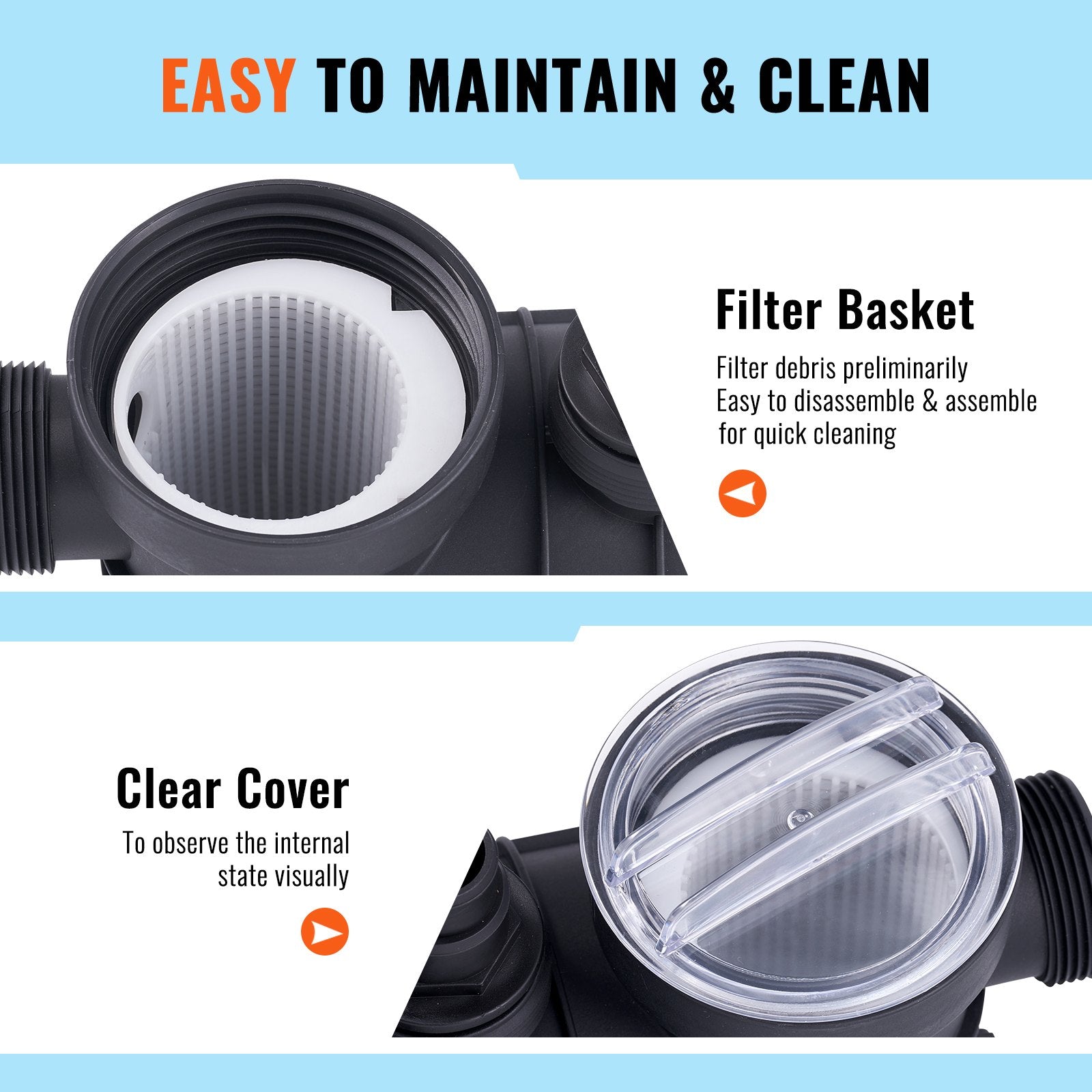 - Easy to Maintain and Clean: Our sand filter pump system includes a filter basket to effectively filter out impurities, which can be easily detached and assembled for quick cleaning. With the transparent lid, you can visually observe the internal status for timely maintenance. It's important to note that we recommend using 20# sand for optimal performance.