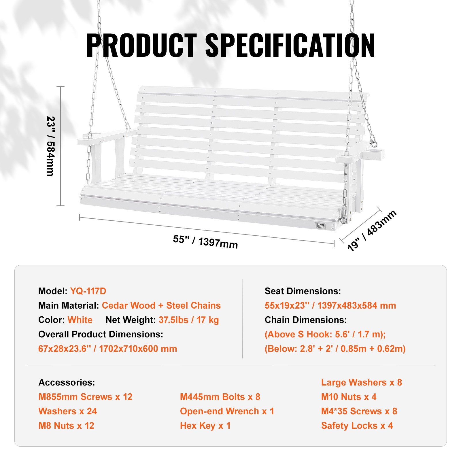 - Main Material: Cedar Wood + Steel Chains