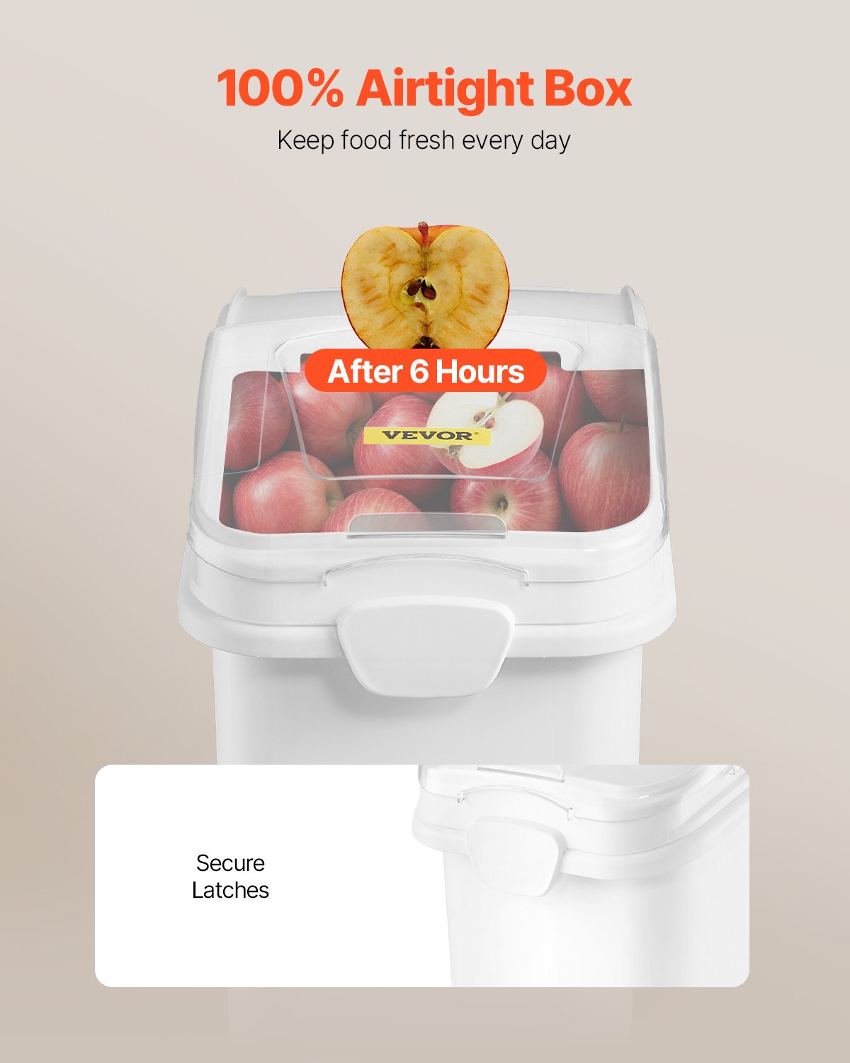 - 100% Airtight Design: Keep your food fresh and protected with the secure latches. This kitchen ingredient bin is perfect for keeping out damp and flys, making it ideal for storing dry foods.