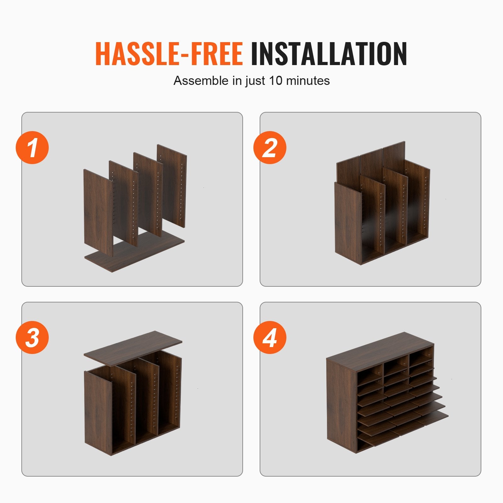 - Assemble in No Time: Our literature organizer sorter is incredibly easy to install, thanks to its simple panel design. With the included assembly instructions, you'll be guided through every step of the process, making it a breeze to complete the installation in just 10 minutes!