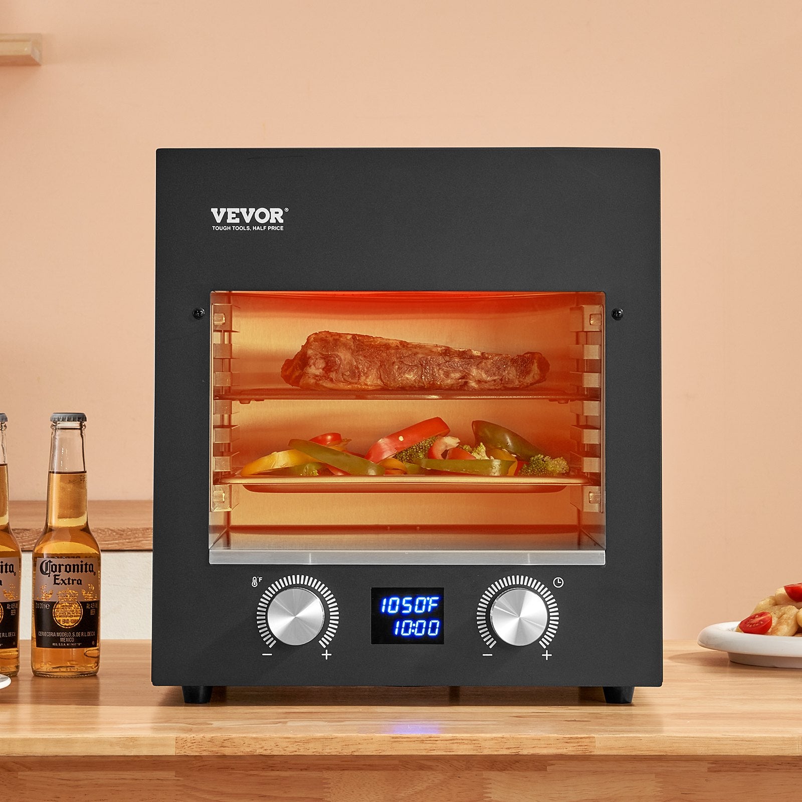 - Dual Knob Precision Control: The dual knobs allow full control over time and temperature, ensuring perfect cooking. The timer feature makes it easy to cook without constant supervision, and the electronic display clearly shows the cooking status.