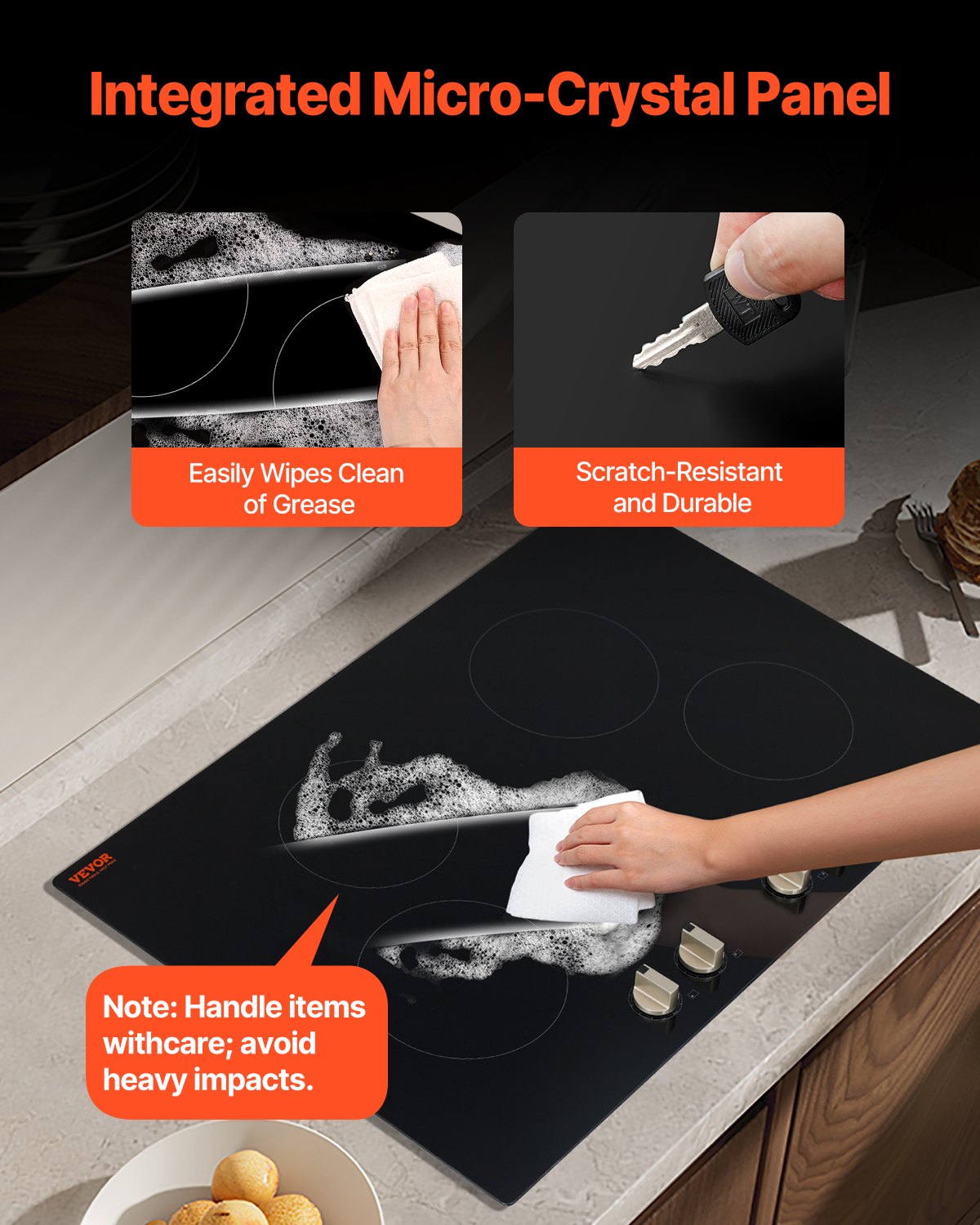 - High-Powered Induction Cooktop: The 6600W built-in electric stove offers fast and even heating, with 12 adjustable power levels, making it ideal for stewing, frying, simmering, steaming, boiling, sautéing, and roasting. With 4 cooking zones, you can cook efficiently and use a wide range of compatible cookware.