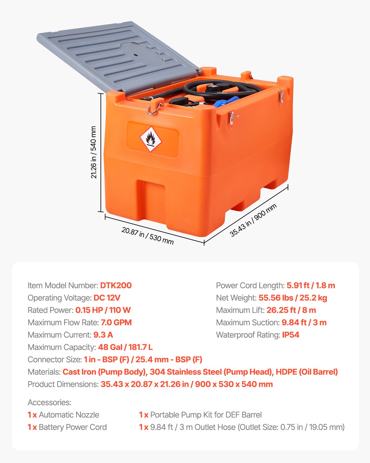 - Large-Capacity Storage Box: The storage box holds up to 48 gallons, making it fit for long-distance transfer when vehicle DEF consumption is high. It automatically replenishes the urea solution during the trip