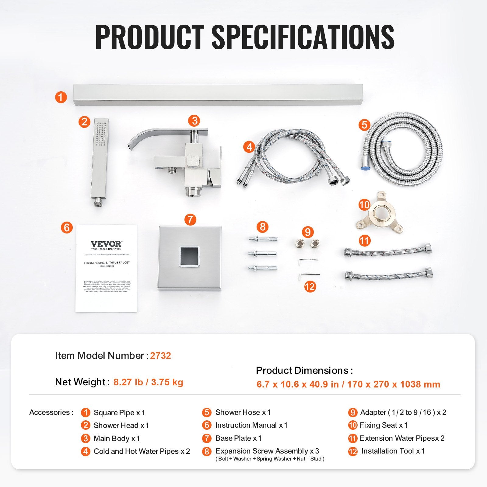 - Smooth Brushed Appearance: This freestanding bathtub faucet undergoes anti-corrosion and anti-rust brushed processing, presenting fine and glossy lines, with an overall understated appearance. Key components are made of high-quality brass for durability, and the stable triangular base ensures it stands firmly. Plus, the square decorative cover adds style while keeping dust away. Elevate your bathroom effortlessly!